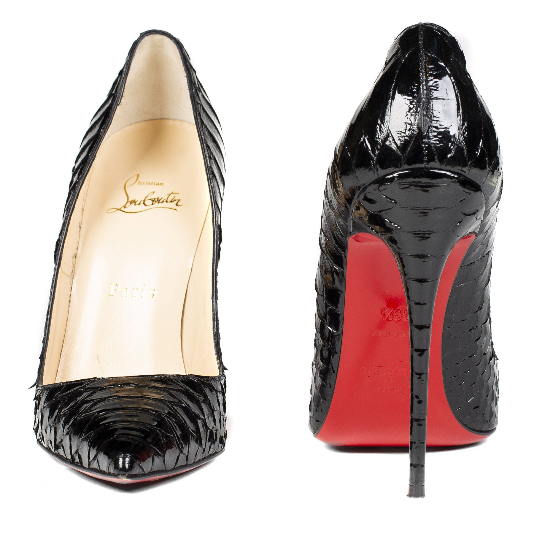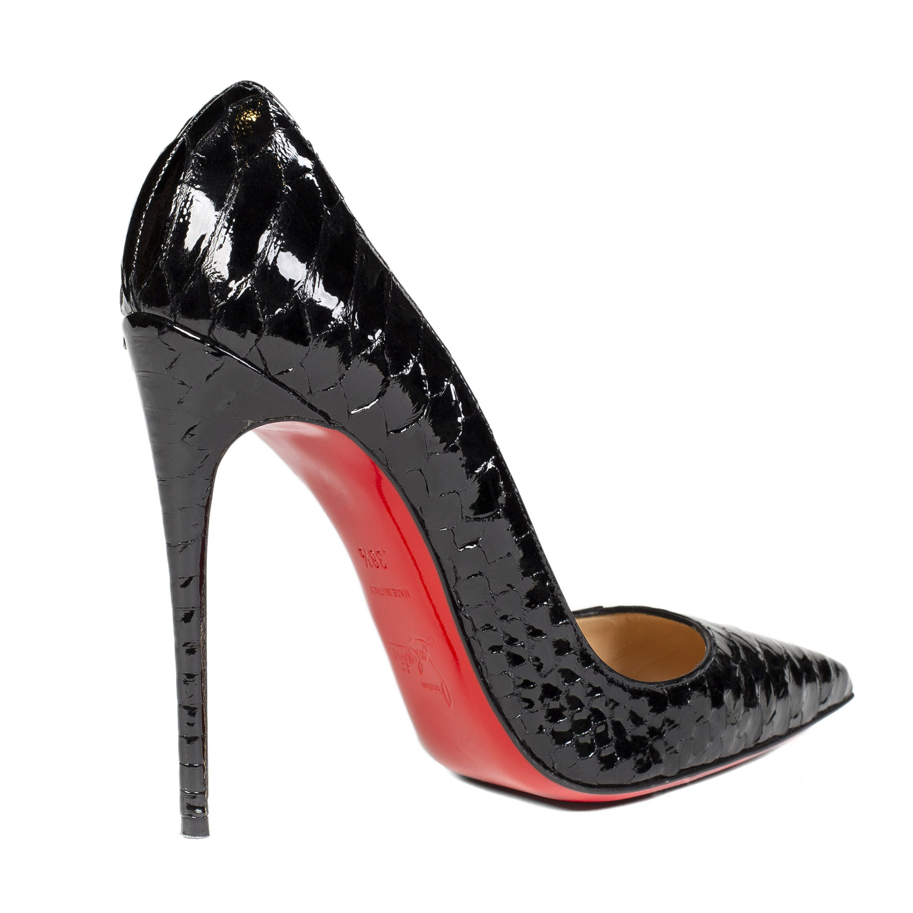 "czarne lakierowane szpilki 12cm, w szpic ze skóry pytona, rozmiar 38,5"