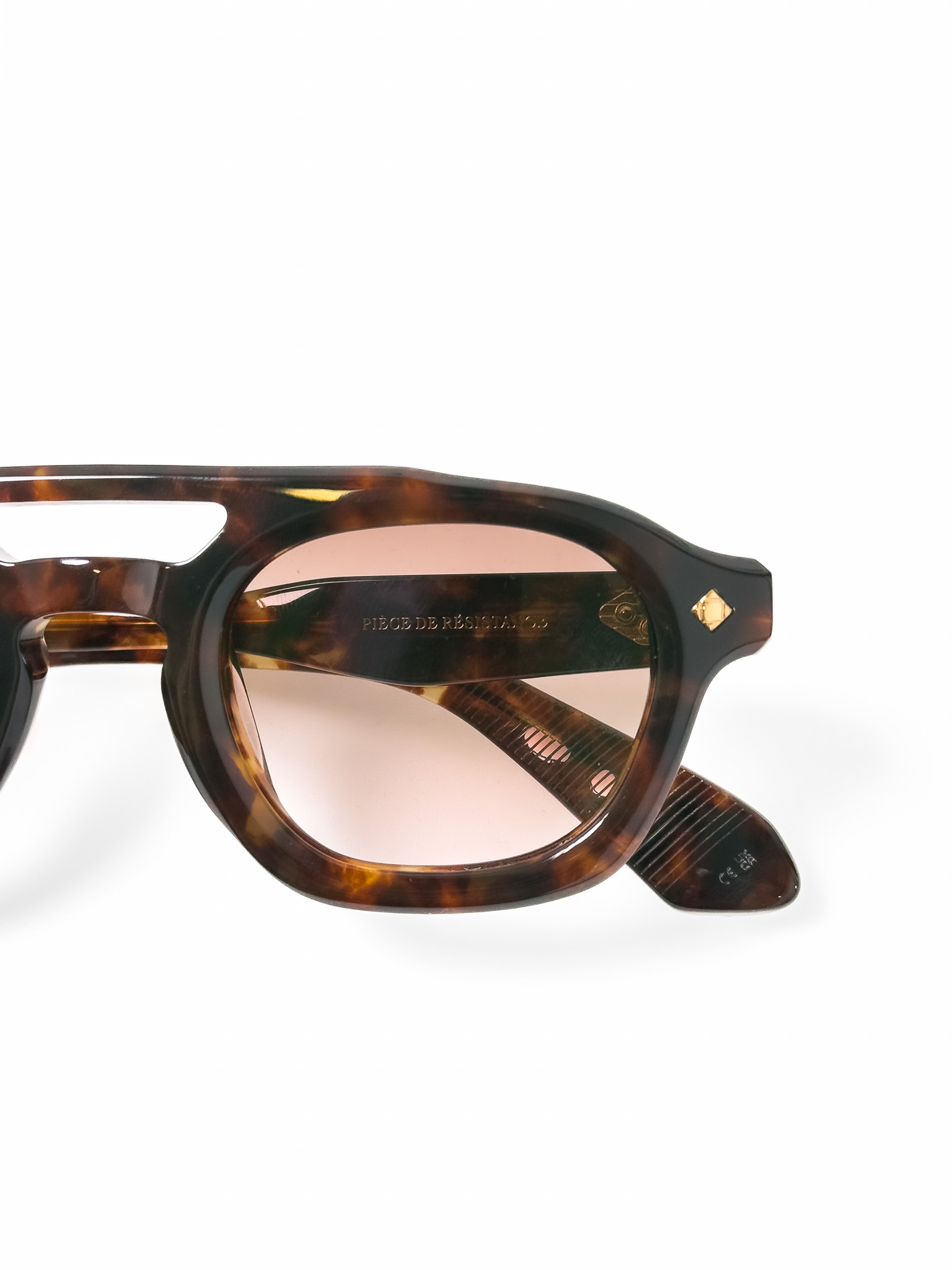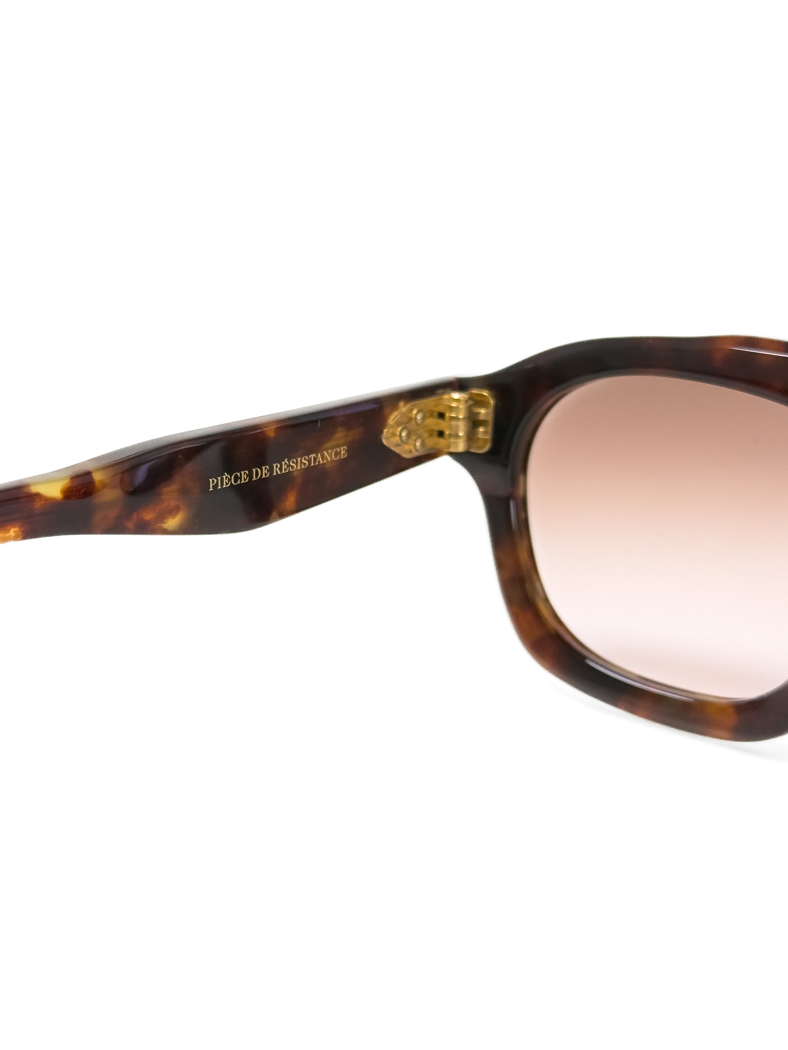"Brązowe szylkretowe okulary przeciwsłonczne Granatowe skórzane etui oraz pudełko w komplecie."