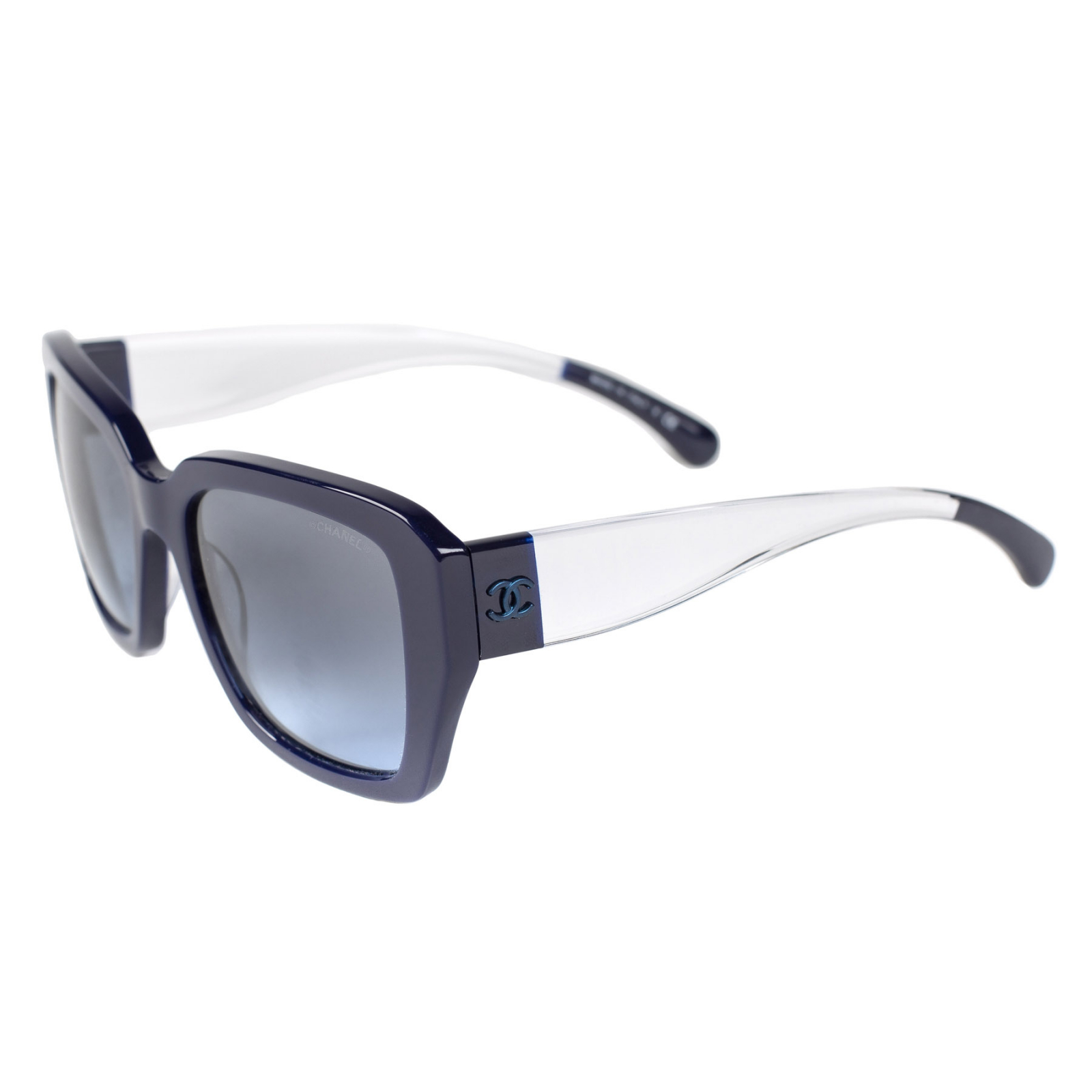 "Granatowe okulary przesiwsłoneczne z transparentnymi zausznikami"