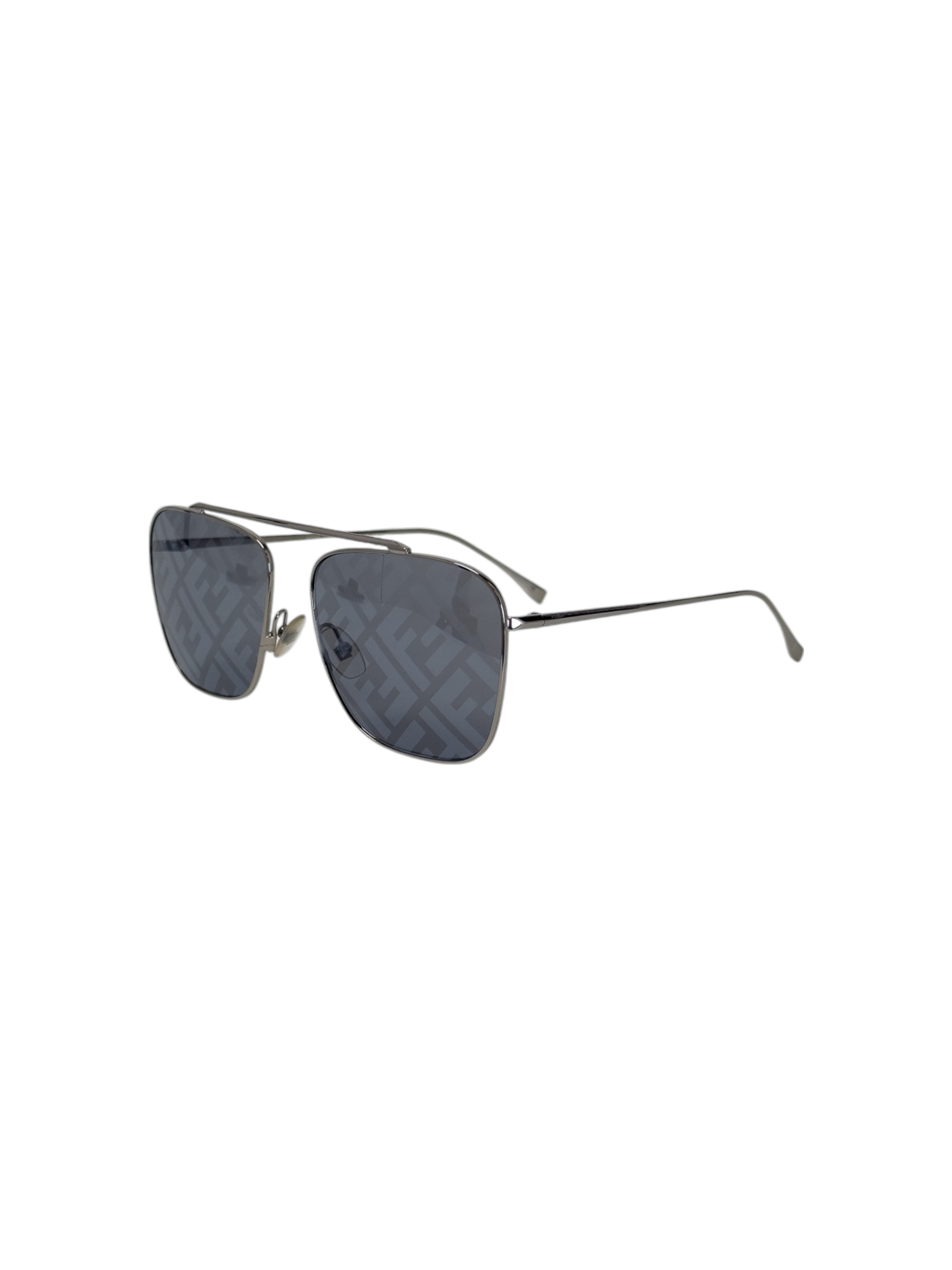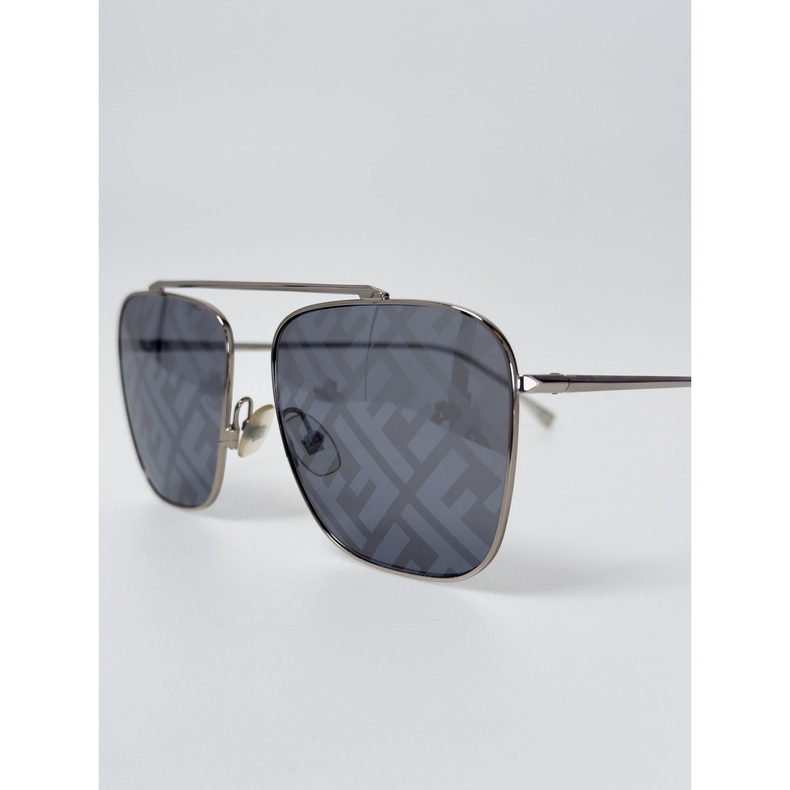 "Srebrne okulary przeciwsłoneczne, szare logowane szkła, cienkie, srebrne oprawki z logo marki, transparentne gumowe noski, w zestawie z etui oraz ściereczką. Stan dobry, rysy na oprawkach."