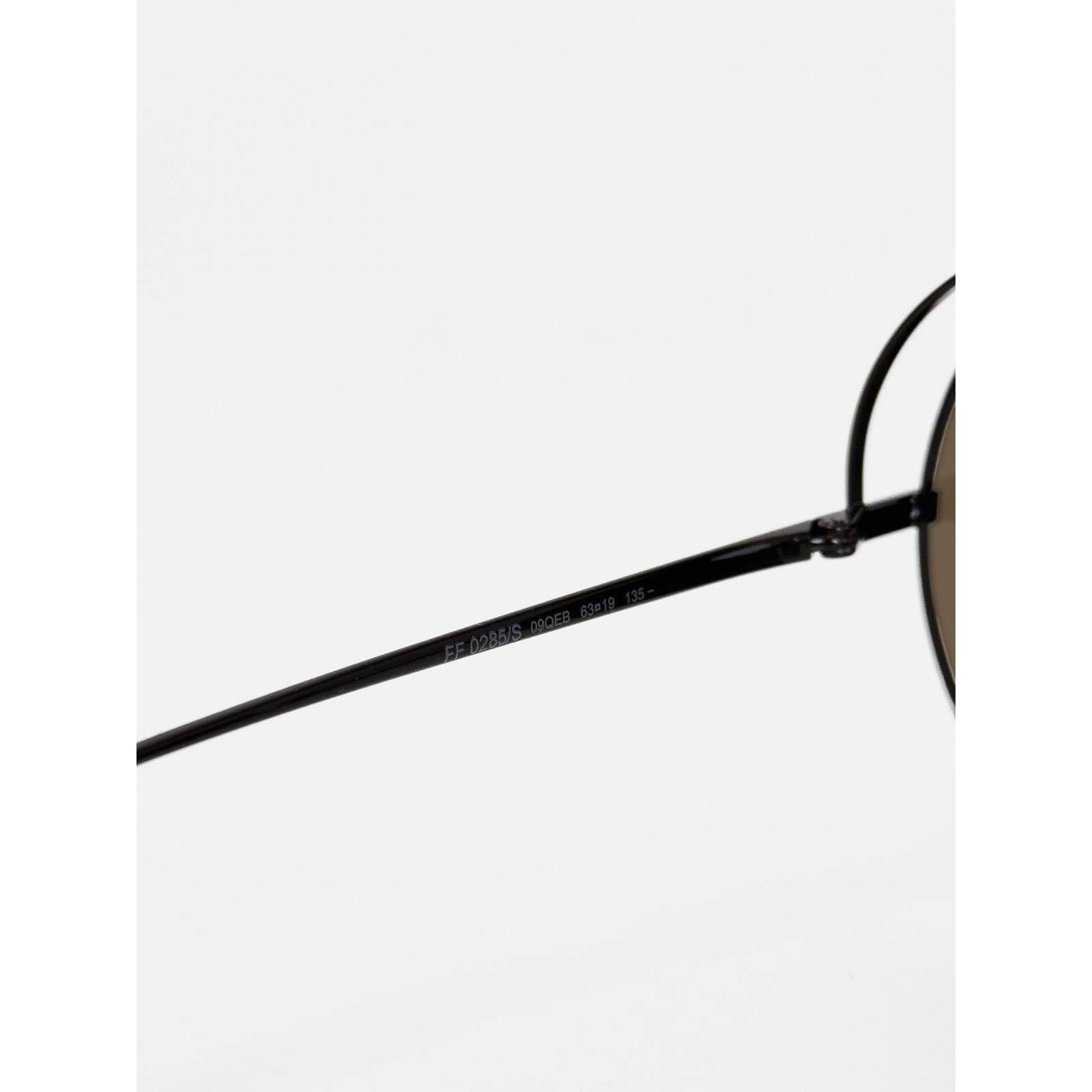 "Ciemnobrązowe okulary przeciwsłoneczne, okrągłe logowane szkła, cienkie oprawki, transparentne noski, złote logo marki na zausznikach, w zestawie z etui oraz ściereczką. Stan bardzo dobry, delikatne rysy na oprawkach."