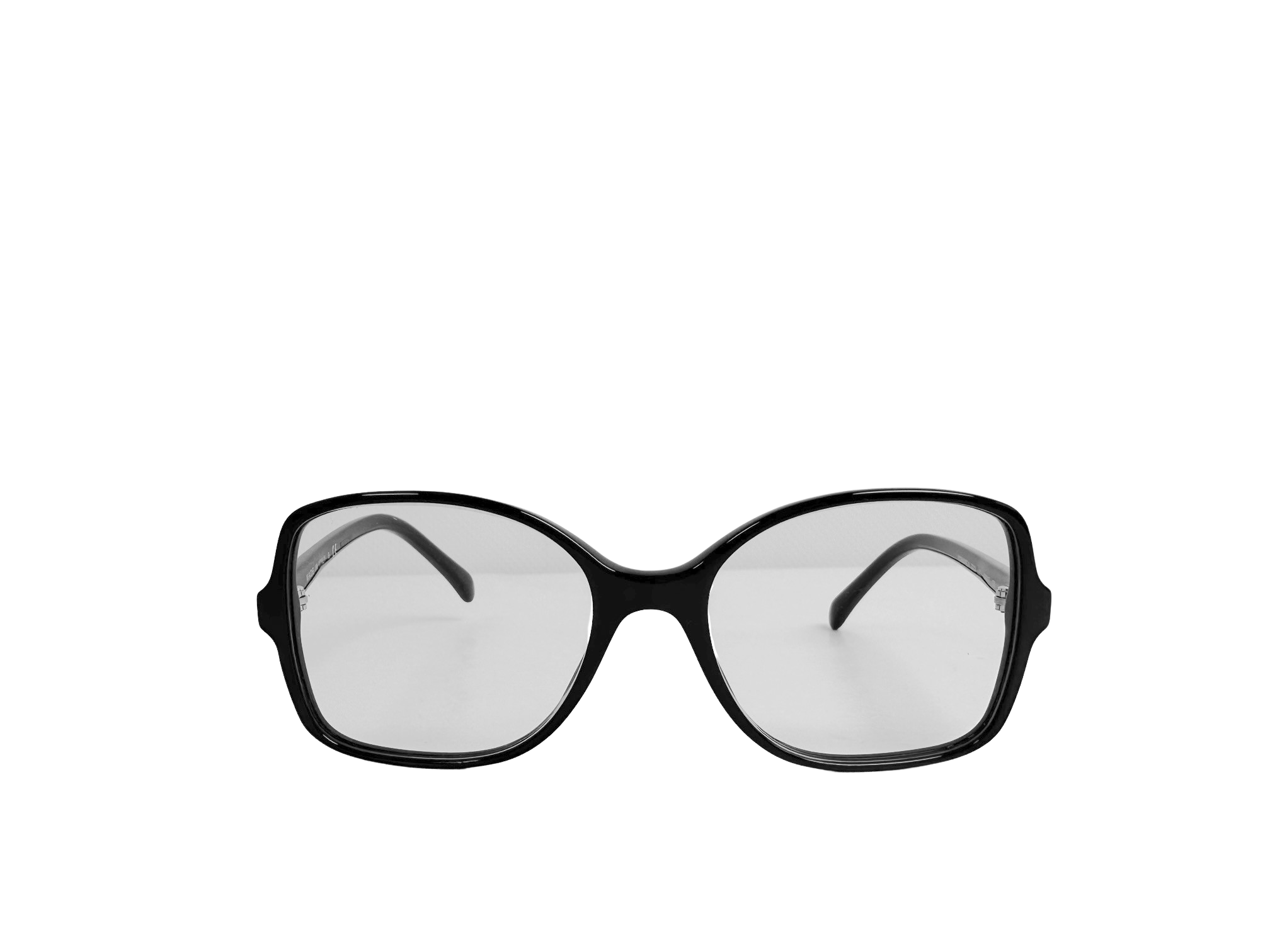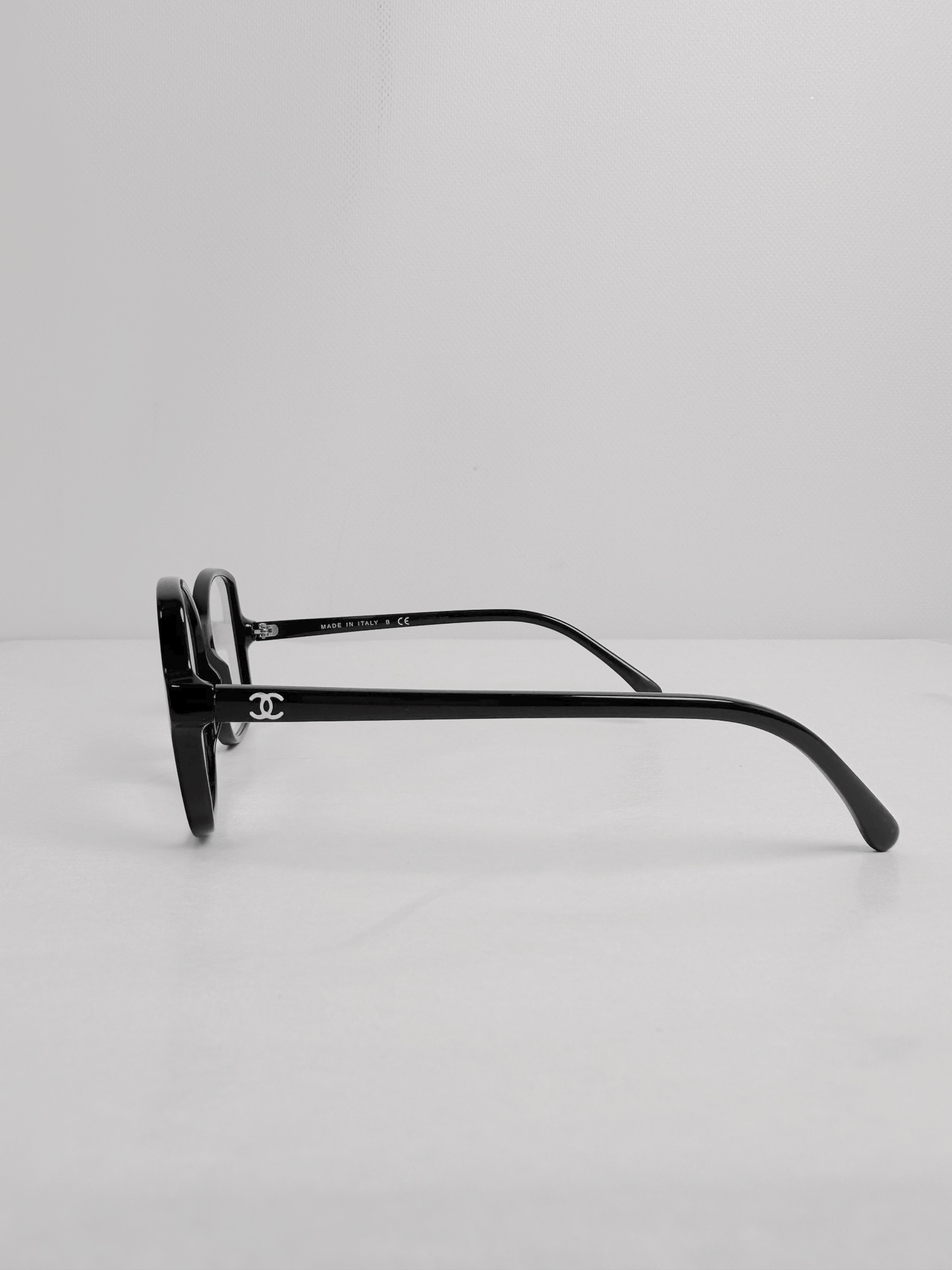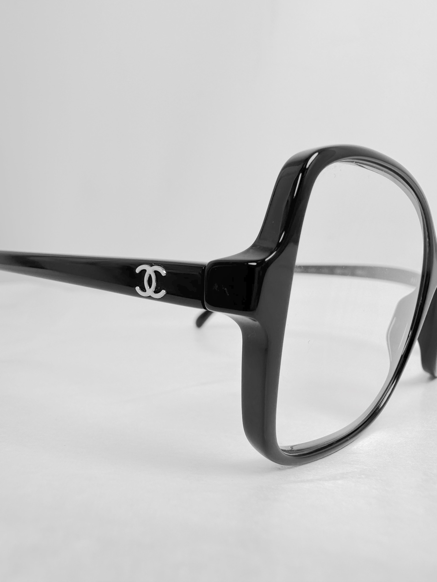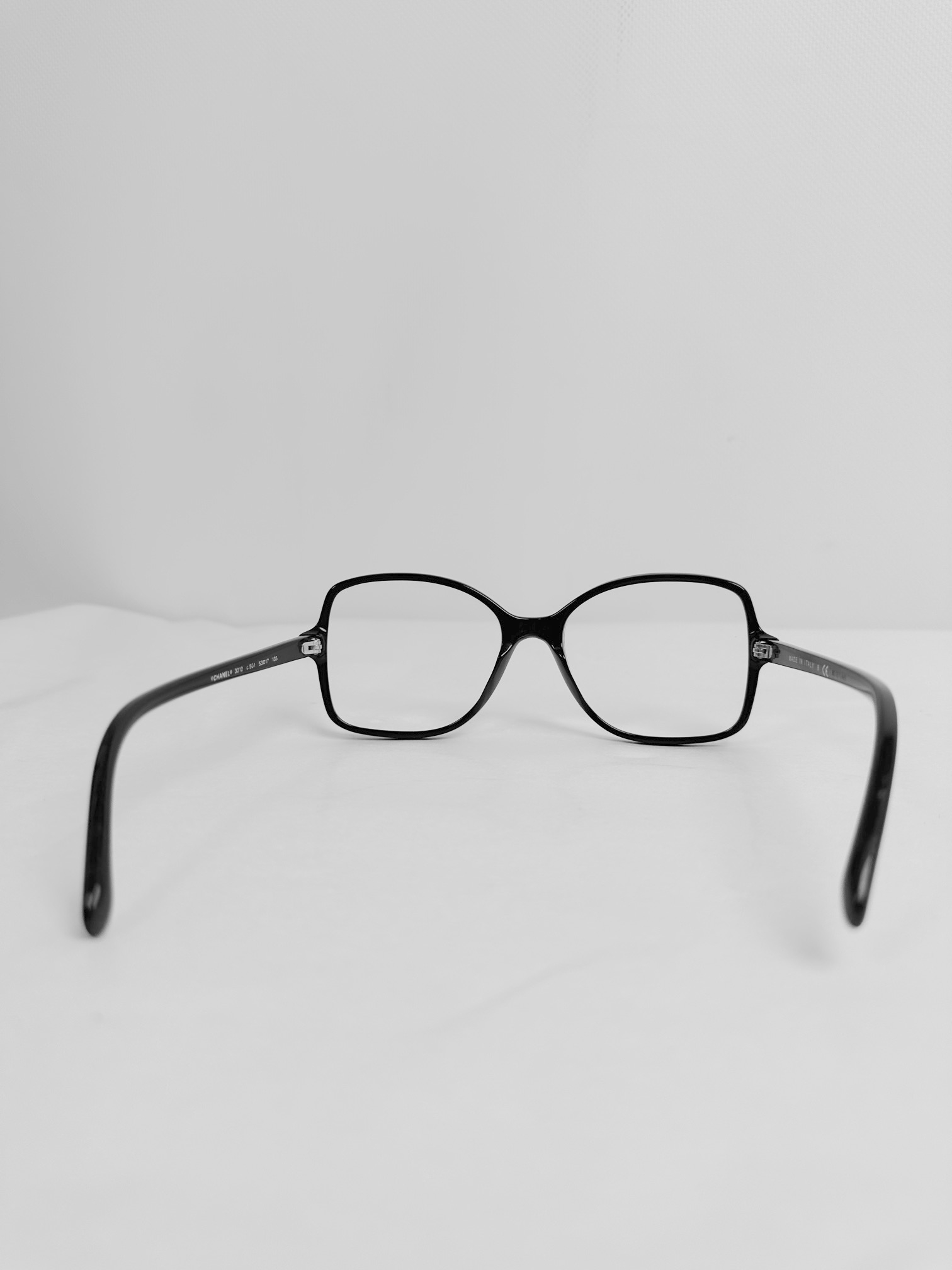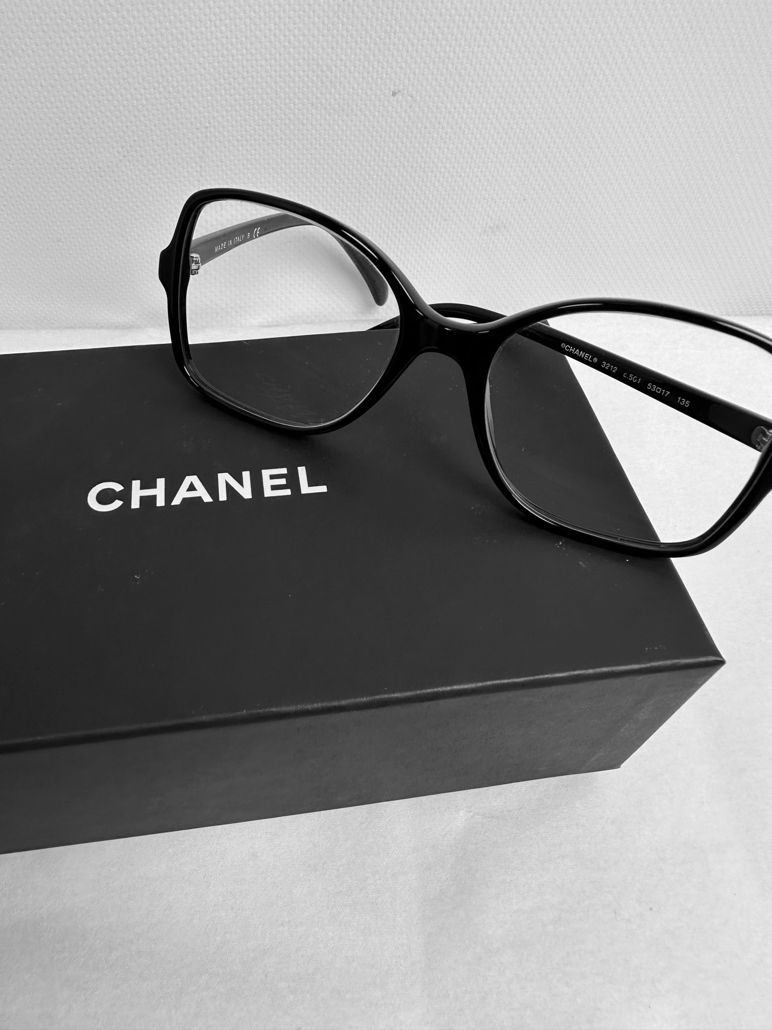 "Czarne okulary korekcyjne. Klasyczny design sprawia, że bez problemu dopasujesz je do każdej stylizacji. Mają średniej wielkości, owalne i lekko wydłużone w kierunku noska szkła korekcyjne, które należy wymienić. Po bokach ozdobione są subtelnym i bardzo kobiecym logo Chanel w kolorze białym. Oprawki wykonane są z plastiku, który ma niewielkie ślady użytkowania w postaci zarysowań na jego powierzchni. Nosek jest plastikowy i nie ma możliwości regulacji. Do okularów dołączone jest szykowne, pikowane i logowane etui, oryginalna (nieużywana, w foliowym woreczku) ściereczka do czyszczenia oraz oryginalne pudełko i dwie książeczki z opisem produktu. Wymiary: wysokość szkieł: 4,5 cm, szerokość szkła: 5 cm. Stan bdb (lekkie rysy na zausznikach)."