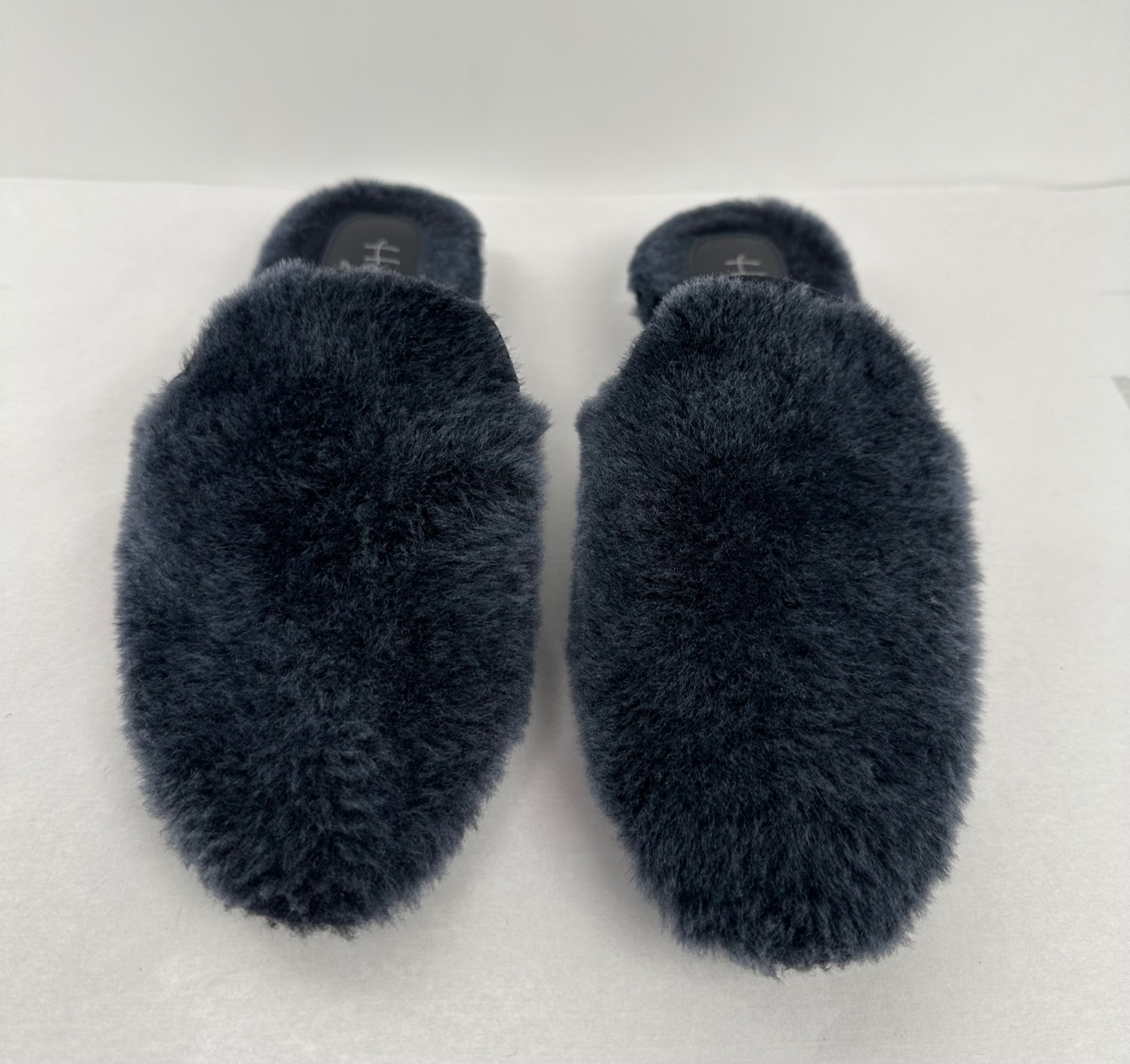 "granatowe futrzaste klapki/pantofle, stan bardzo dobry. Rozmiar 37."