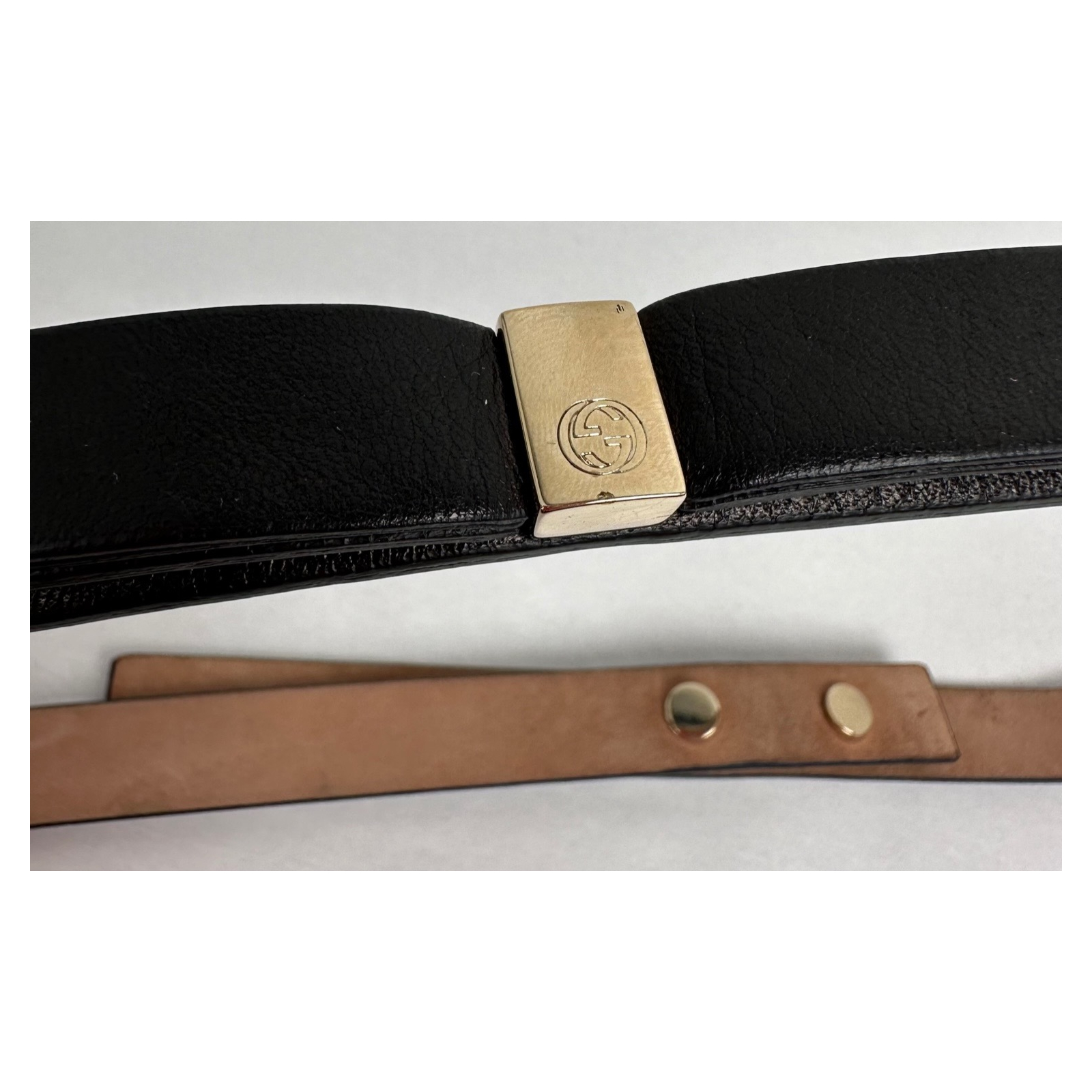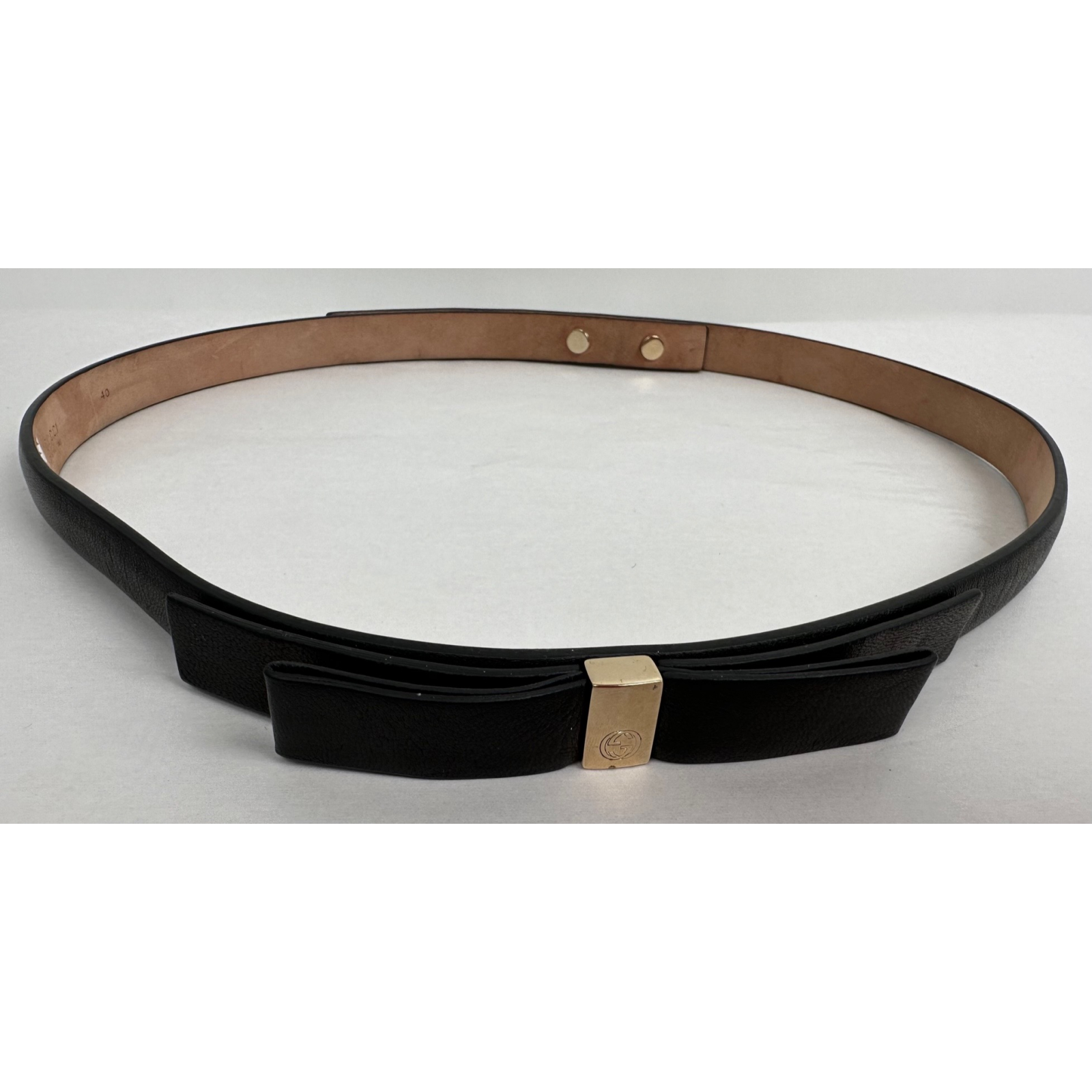 "cienki skórzany pasek z logowaną kokardką na przodzie. Rozmiar 40."