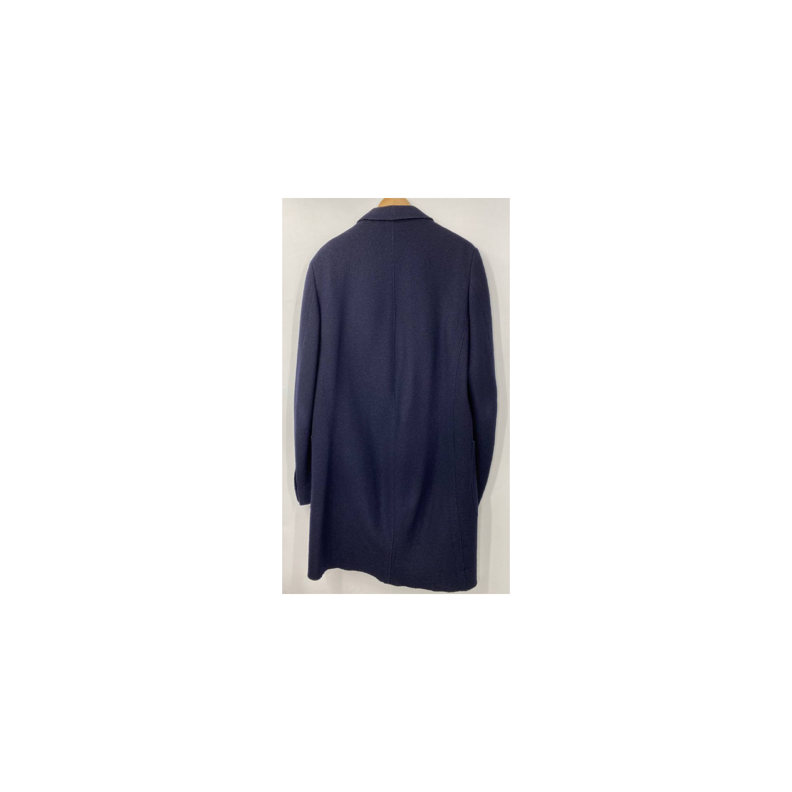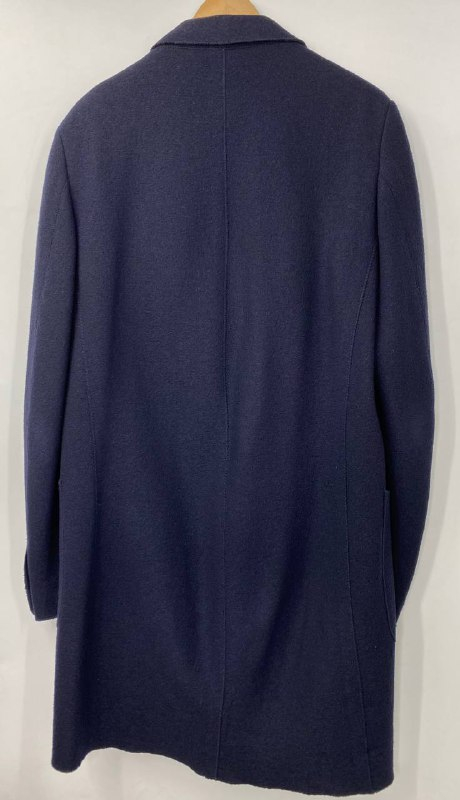 "płaszcz granatowy, cienki, surowo wykończony zapinanay na trzy guziki, z kieszeniami R.50 It Skład 100% wełna"
