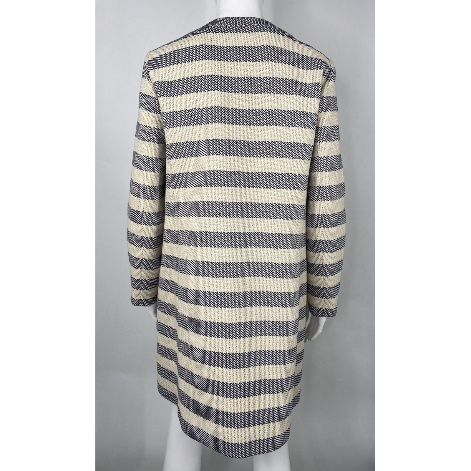 "Weekend Max Mara - płaszcz, beżowy, w niebieskie paski, przód kieszonki, przejściowy, klasyczny krój, bez podszewki. rozm 36.