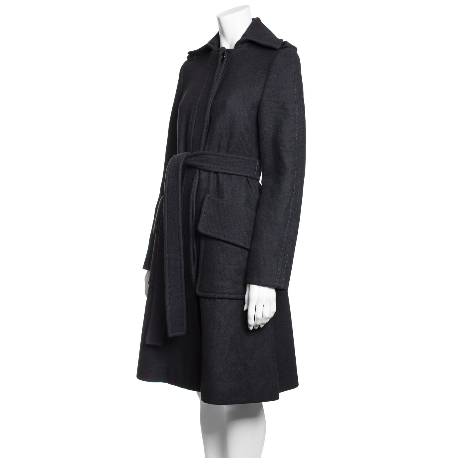 "czarny płaszcz, litera 'A', z paskiem, duże wywijane kieszenie rozm 42, 100% wełna"