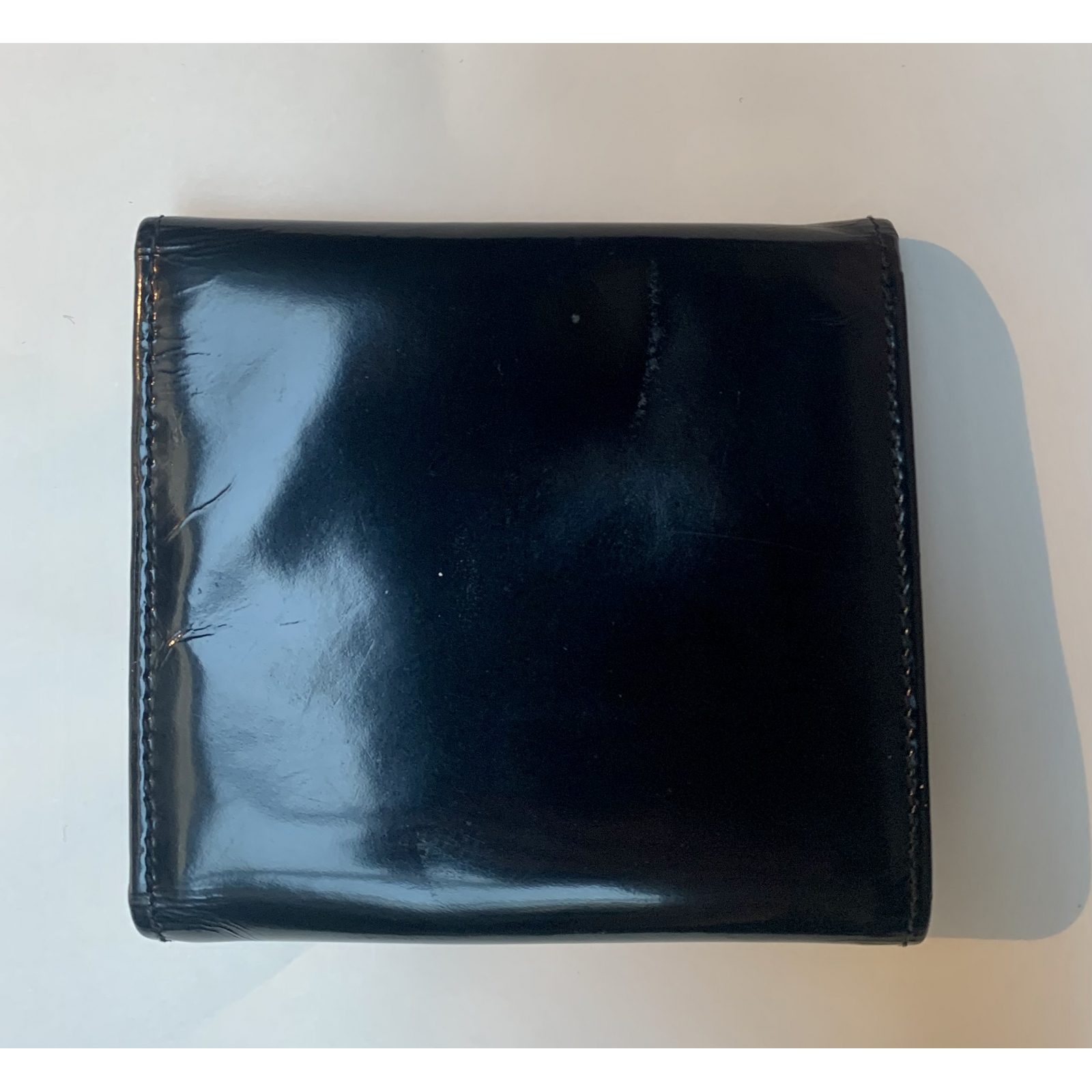 "czarny lakierowany portfel, srebrne zapięcie, porysowan+ pudelko