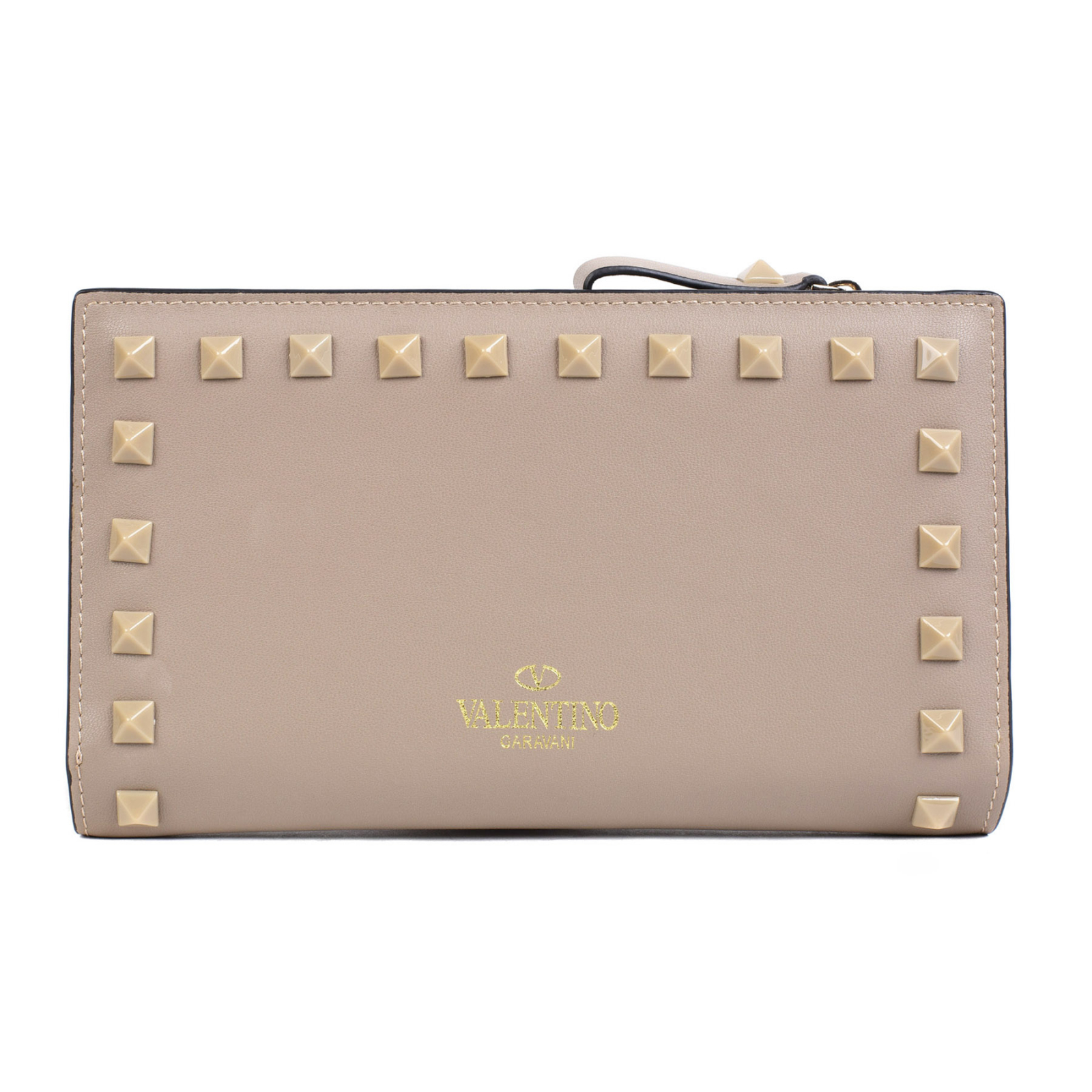 "Valentino portfel kolor kamienny, ćwieki, woreczek czerwony"
