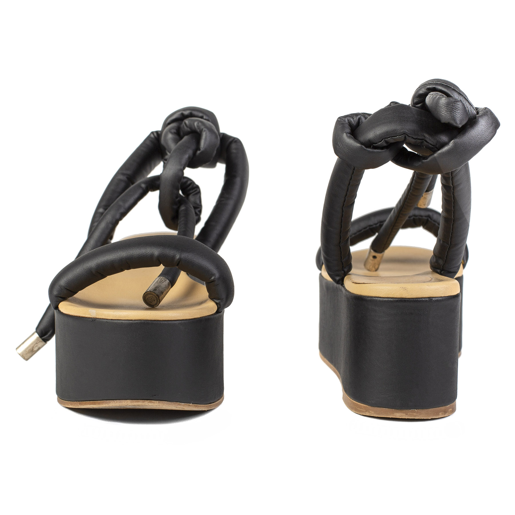 "sandały czarne na platformie 5 cm. beżowy środek, czarne paski zakończone srebrnym metalem, zawiązywane w kostce r. 39"