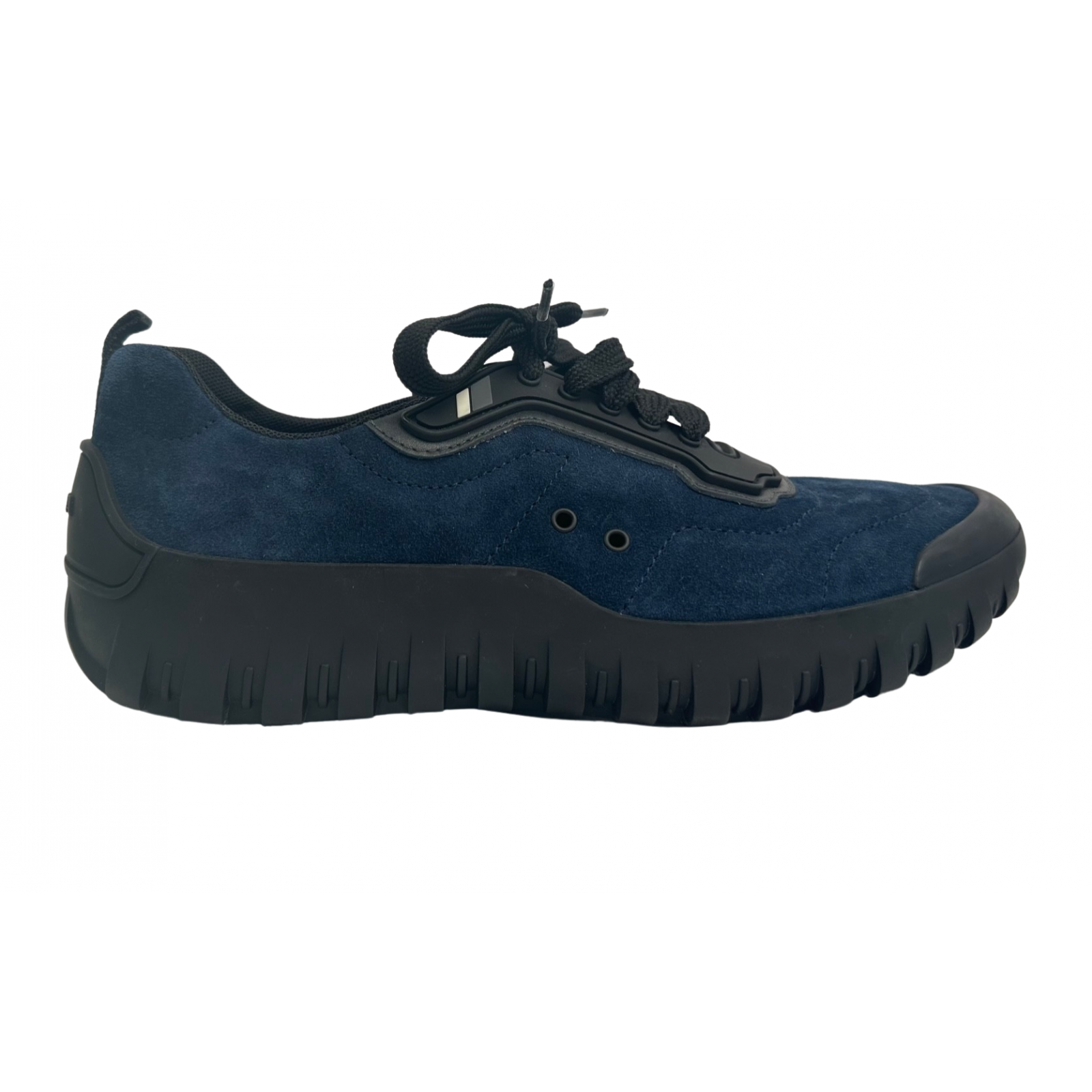 "sneakersy zamszowe czarno granatowe, sznurowane, z gumową podeszwą, używane, stan bardzo dobry, pudełko i worek przeciwkurzowy w zestawie."