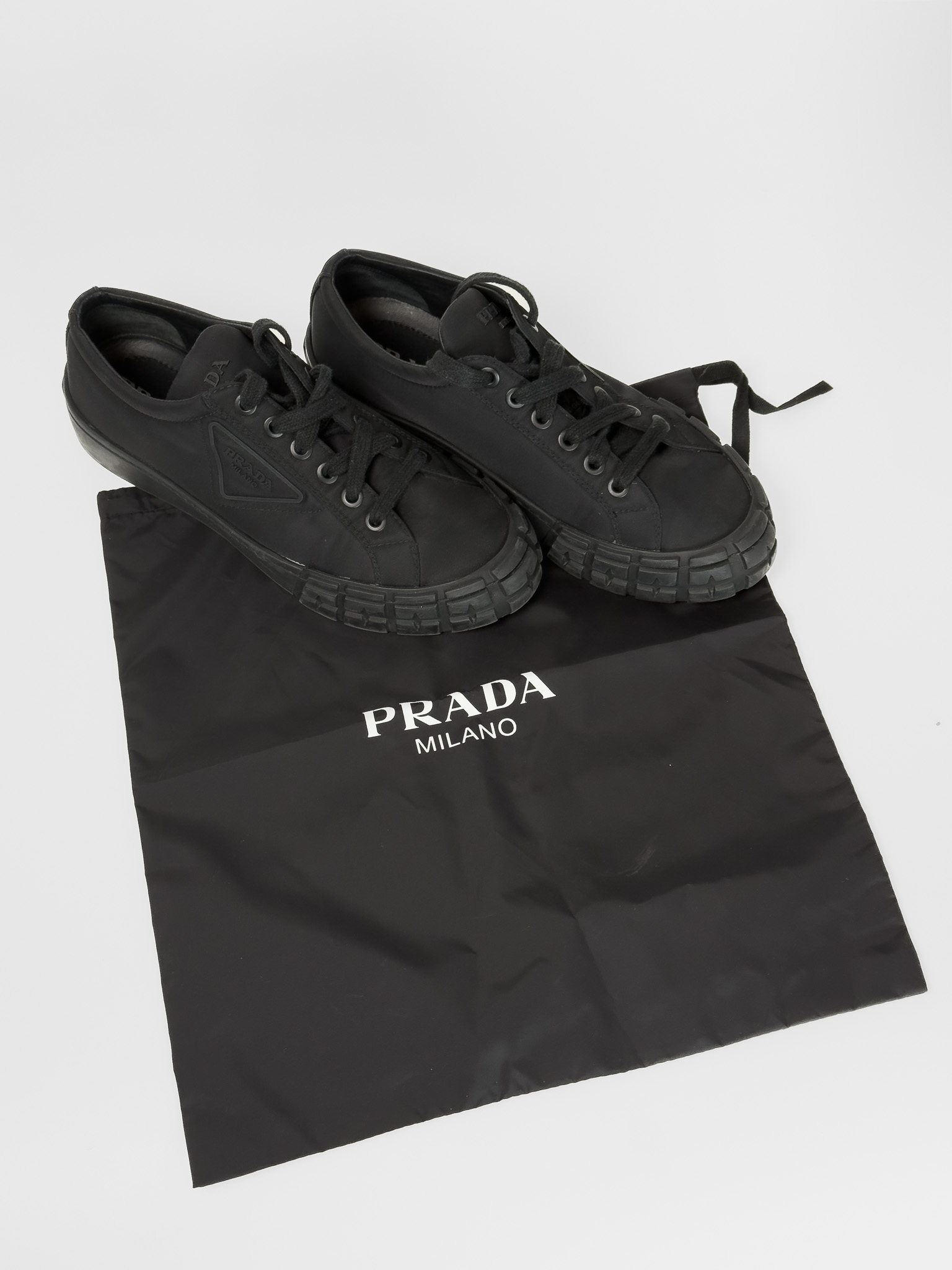 "Czarne sneakersy, sznurowane, delikatna platforma, logowanie po bokach. Rozmiar 41. Z pudełkiem w komplecie oraz potwierdzenie zakupu Mytheresa. Stan bardzo dobry, z drobnymi śladami użytkowania."