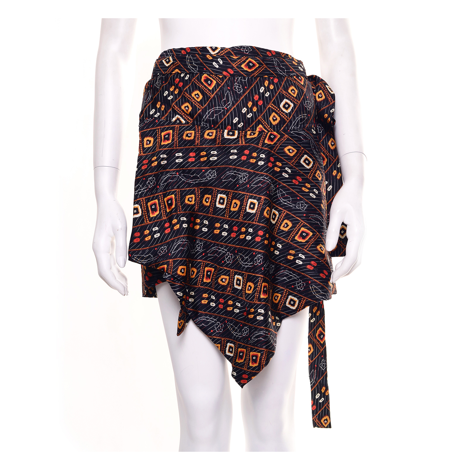 "Wiązana spódnica , czarna w kolorowe wzory. Wykonana z 100% jedwabiu , rozmiar 42 , nowa"