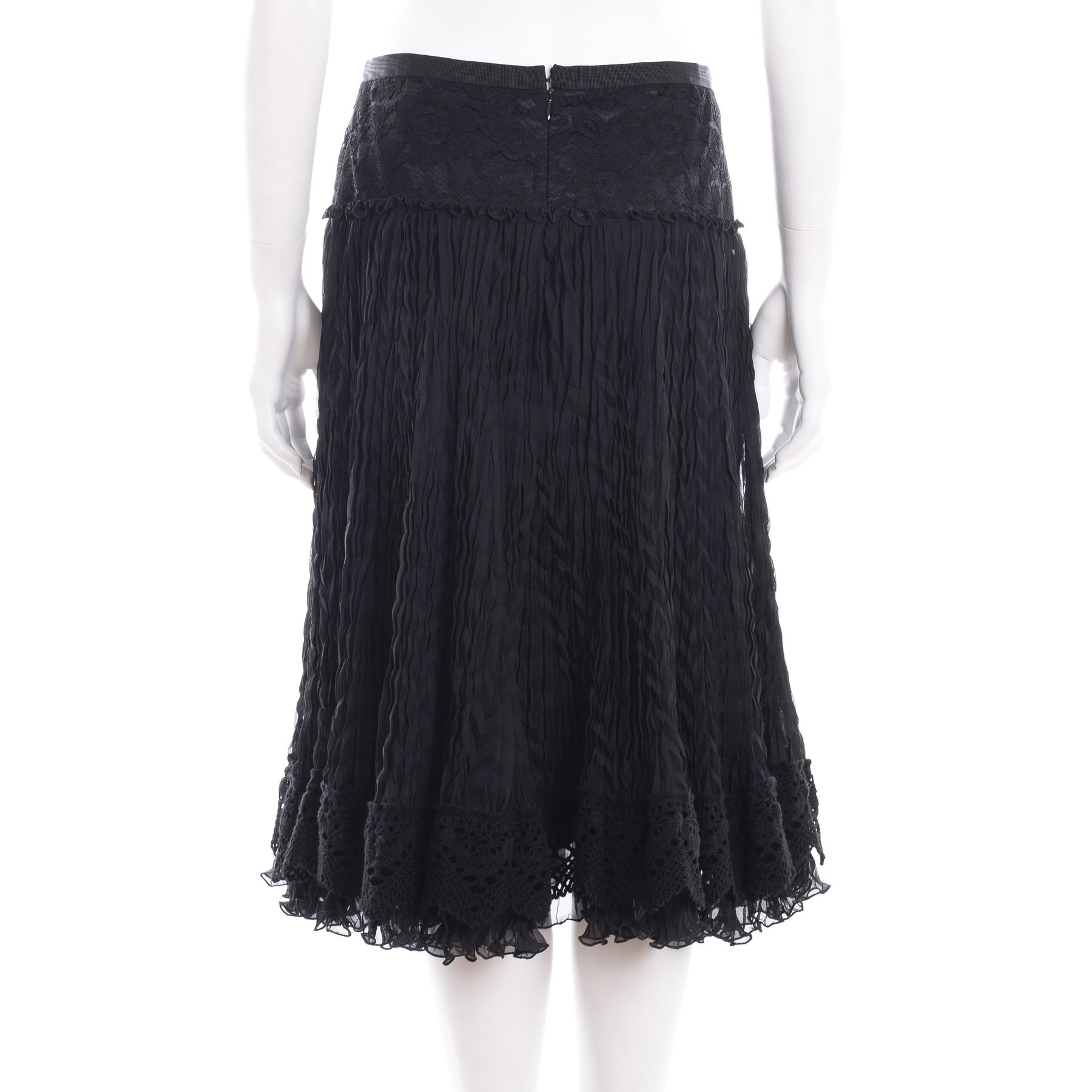 "Czarna spódnica z marszczeniami i koronką . Zapinana na suwak , rozmiar M"