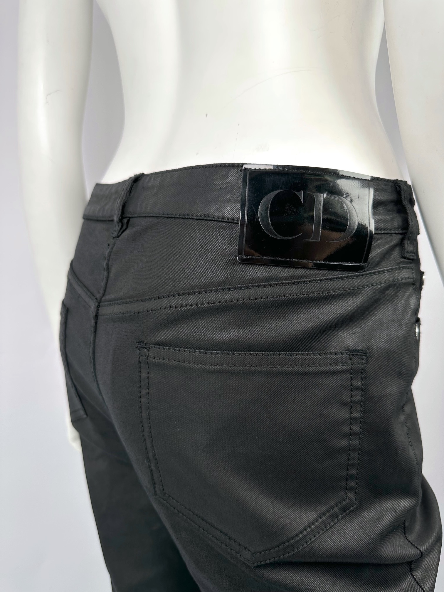 "czarne spodnie, wąska nogawka wykończona na dole suwakiem, logowany guzik oraz dżety przy kieszeniach, czarna naszywka z logiem z tyłu. Rozmiar IT 40. Skład: 88% bawełna, 10% resin, 2% elastan. Wymiary: szer. talii 37 cm, szer. bioder 44 cm, dł. całkowita 93 cm."