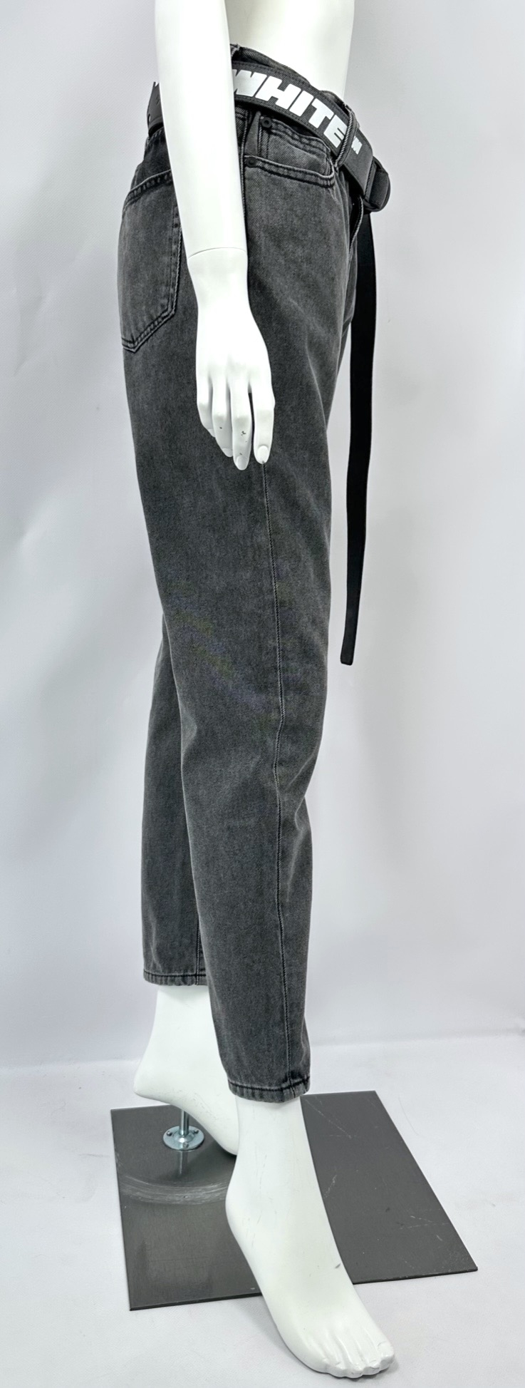 "szare jeansy, prosta nogawka, w pasie gumka w formie falbanki, zapięcie na suwak i guzik, boczne i tylne kieszenie, z tyłu skórzana naszywka z logiem, nowe z metką, w zestawie szary pasek z białymi nadrukami. Rozmiar 30. Skład: 100% bawełna. Wymiary: szer. talii 37 cm, szer. bioder 46 cm, dł. całkowita 37 cm."