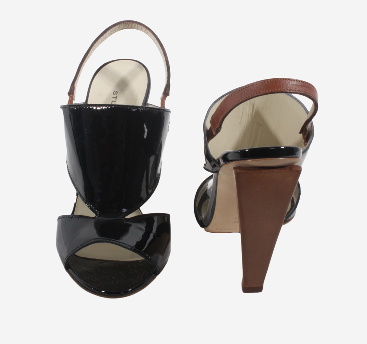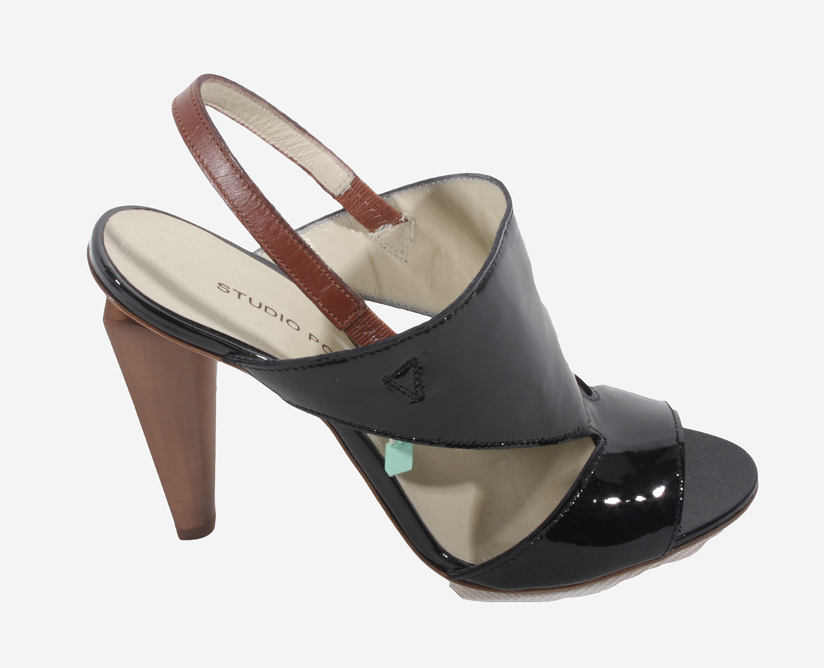 "Sandały na obcasie w kolorze czarnym lakierowane, rozmiar 38. nowe z odkrytą piętą."