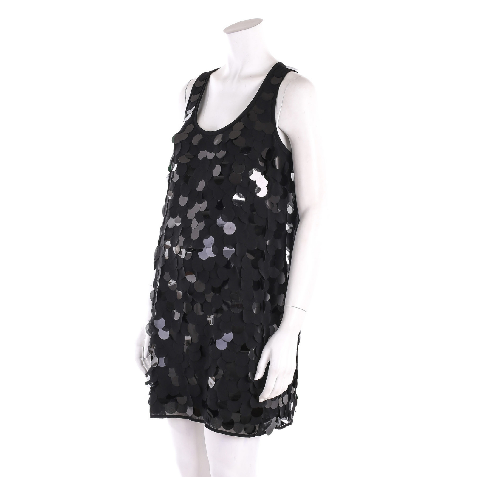 "Czarna sukienka na ramiączka , z aplikacją w postaci kółeczek . Rozmiar M"