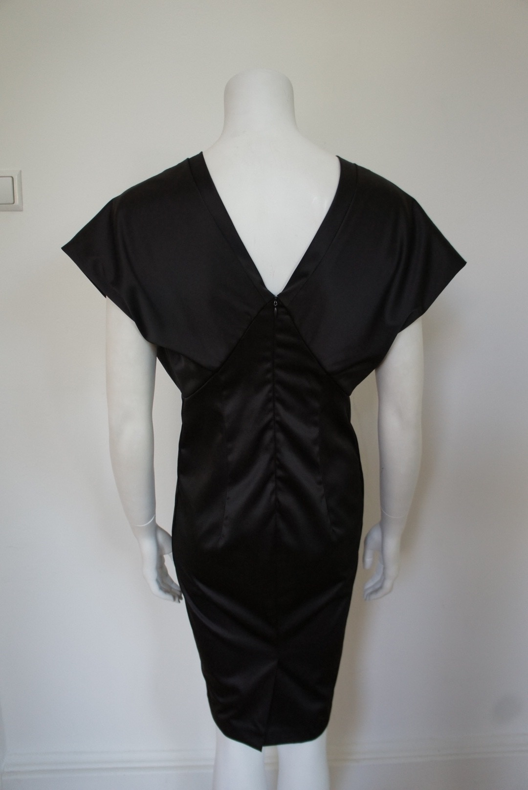 "Czarna sukienka z krótkimi rękawami , satynowa , odkryte plecy. Rozmiar M"
