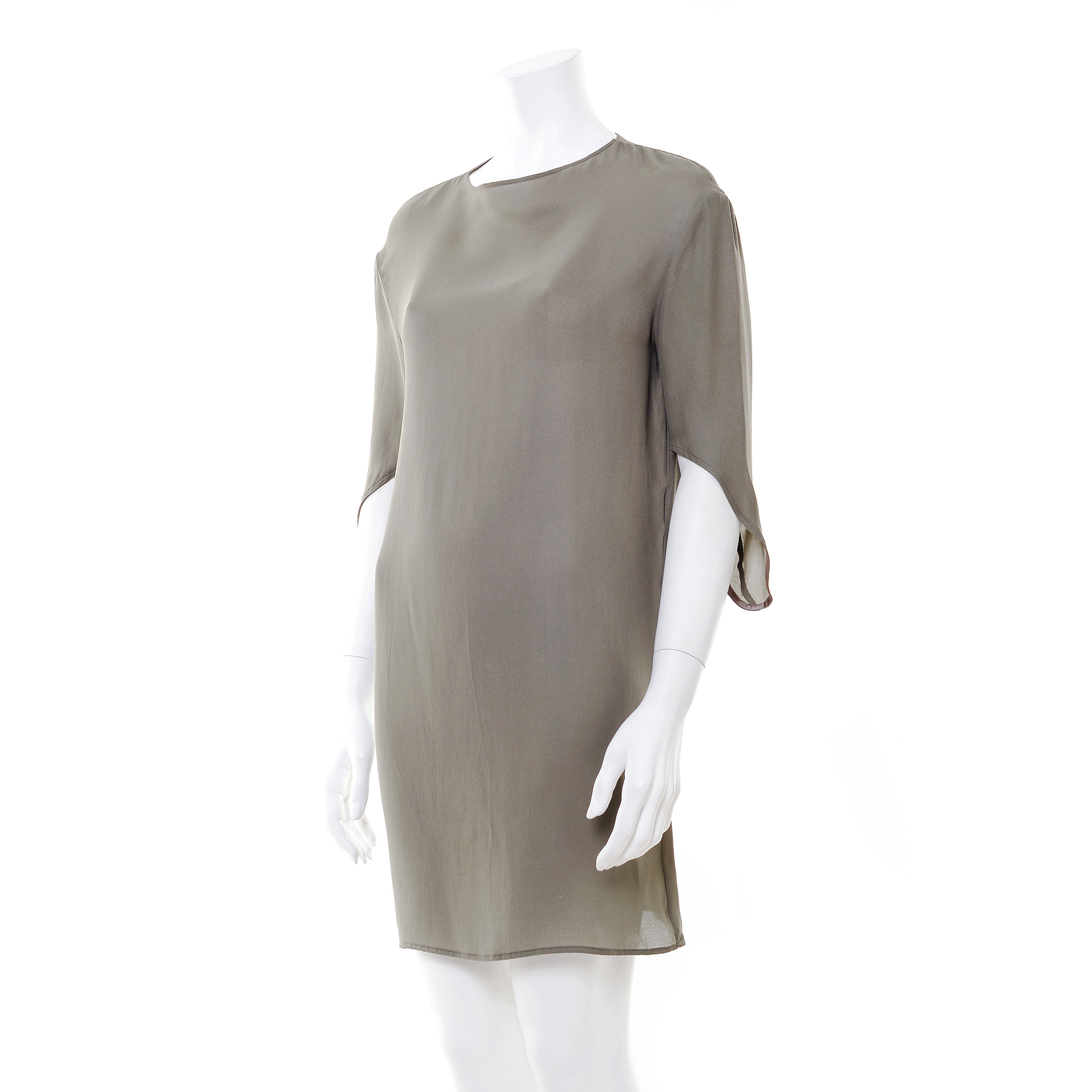 "Sukienka w kolorze khaki , z rękawem 3/4. Wykonana z 100% jedwabiu"