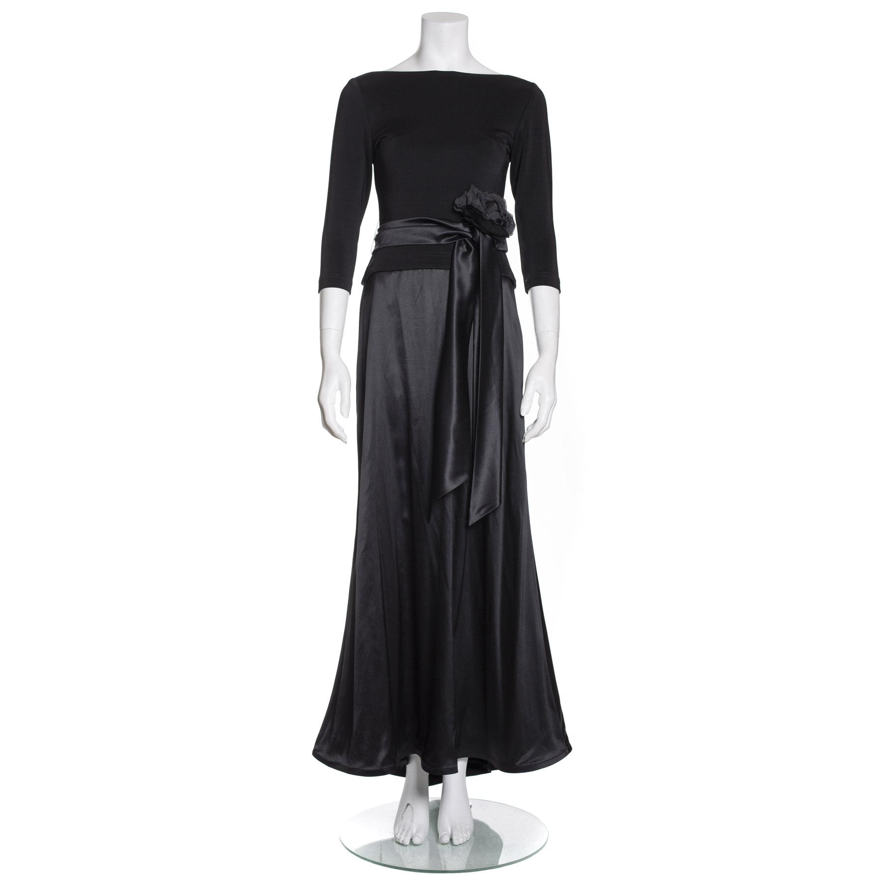 "sukienka długa, góra bawełniana, dół jedwabny, doczepiany kwiat z boku, pasek, suwak z boku"