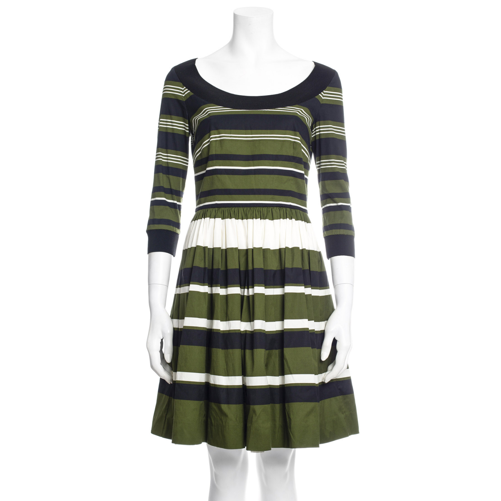 "Prada sukienka długie rękawy, w paski zielono-czarno-białe, rozkloszowana, it 42"