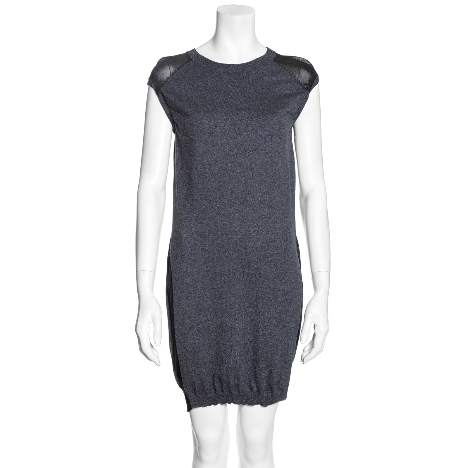 "dzianinowa szara melanżowa sukienka bez rękawów, z tyłu transparentne czarne wstawki, rozmiar M"