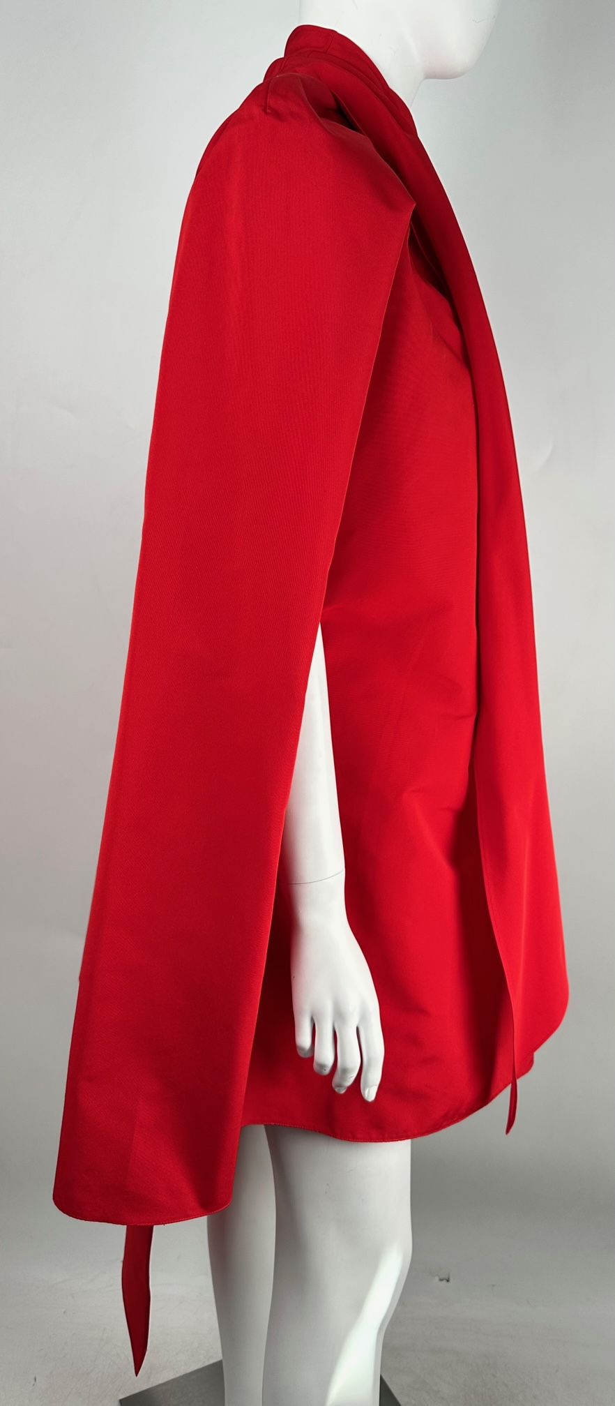 "Sukienka czerwona w formie peleryny, wiązana z tyłu. Podszewka na ramiączkach. Valentino. Rozmiar it 42. Valentino oversized gathered cotton-blend faille mini dress. Długość całkowita 83 cm. Skład: 54% bawełna, 46% poliester."