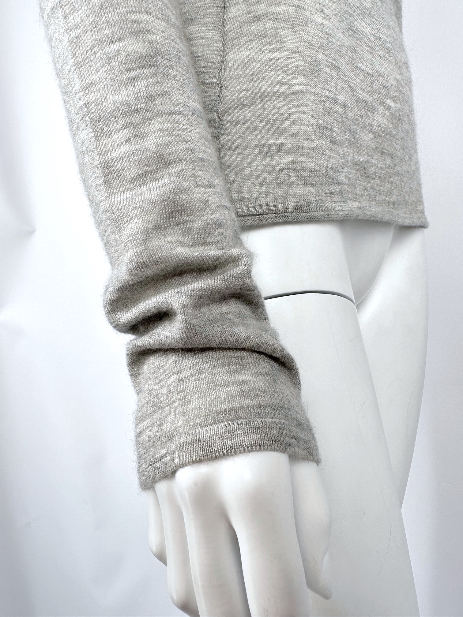 "szary sweter z długim rękawem. Rozmiar M. Skład: 100% kaszmir."