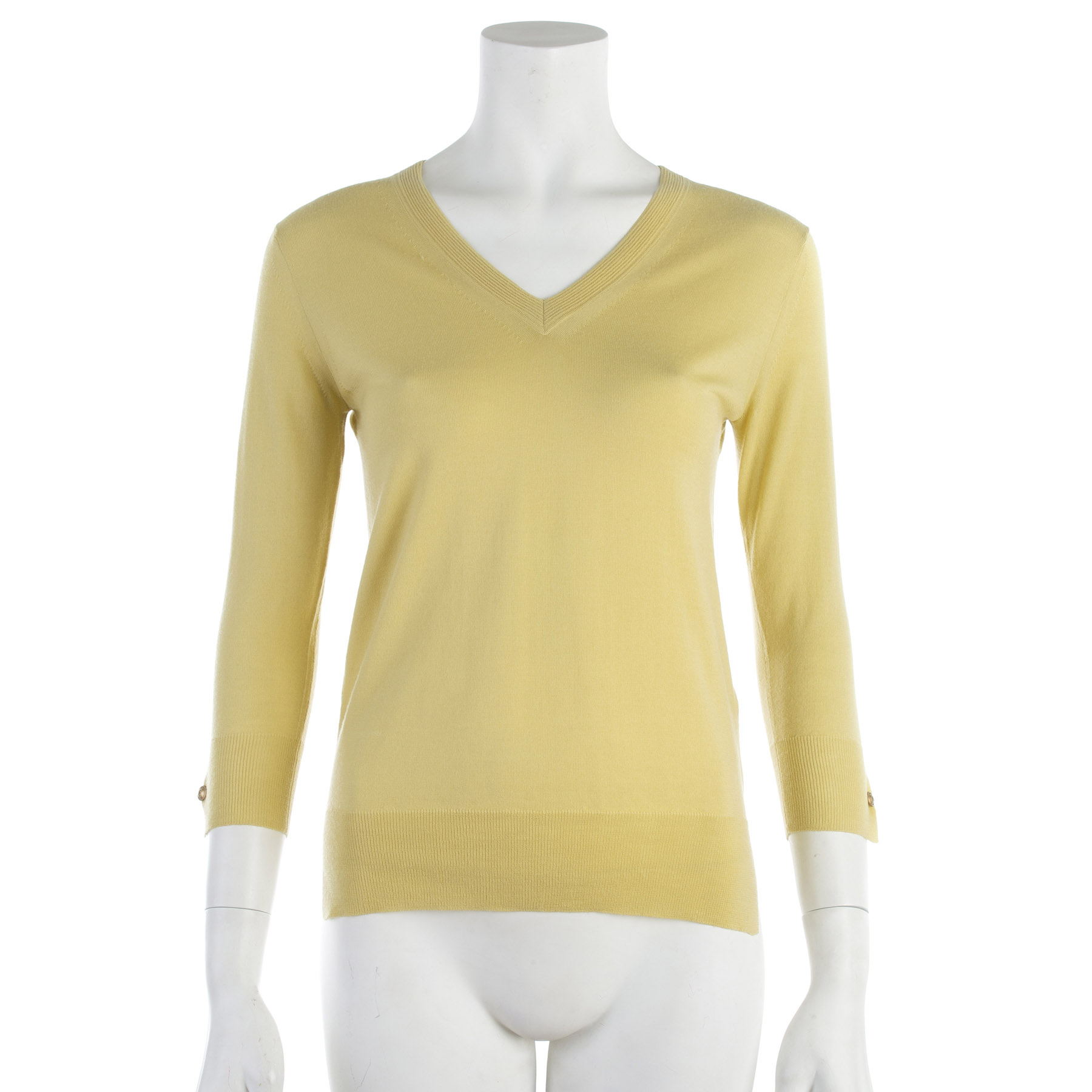 "sweterek z dekoltem V , rękaw 3/4 z guziczkami złotymi ,rozm S"