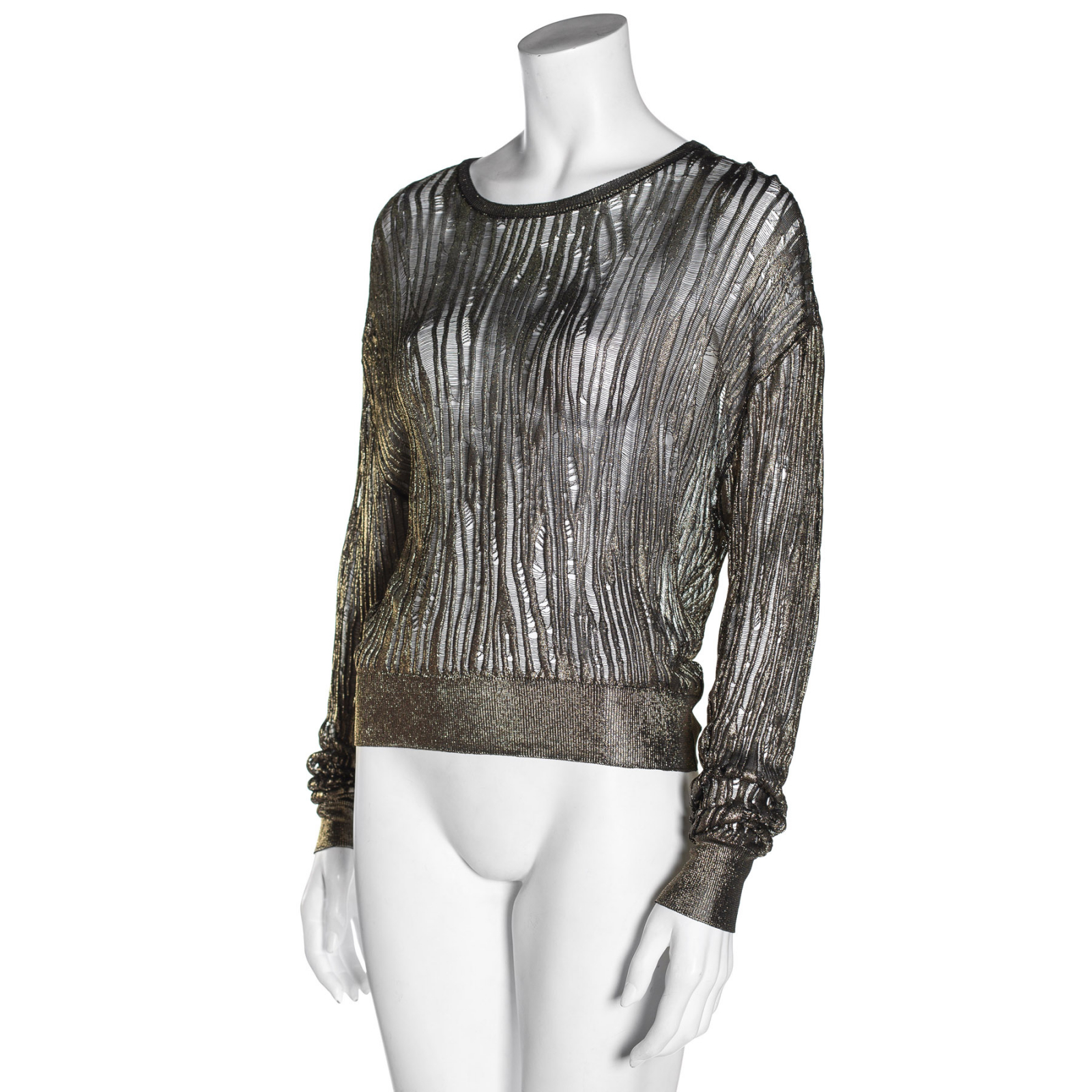 "Złoty cienki, ażurowy (efekt rozdarć) sweter.
