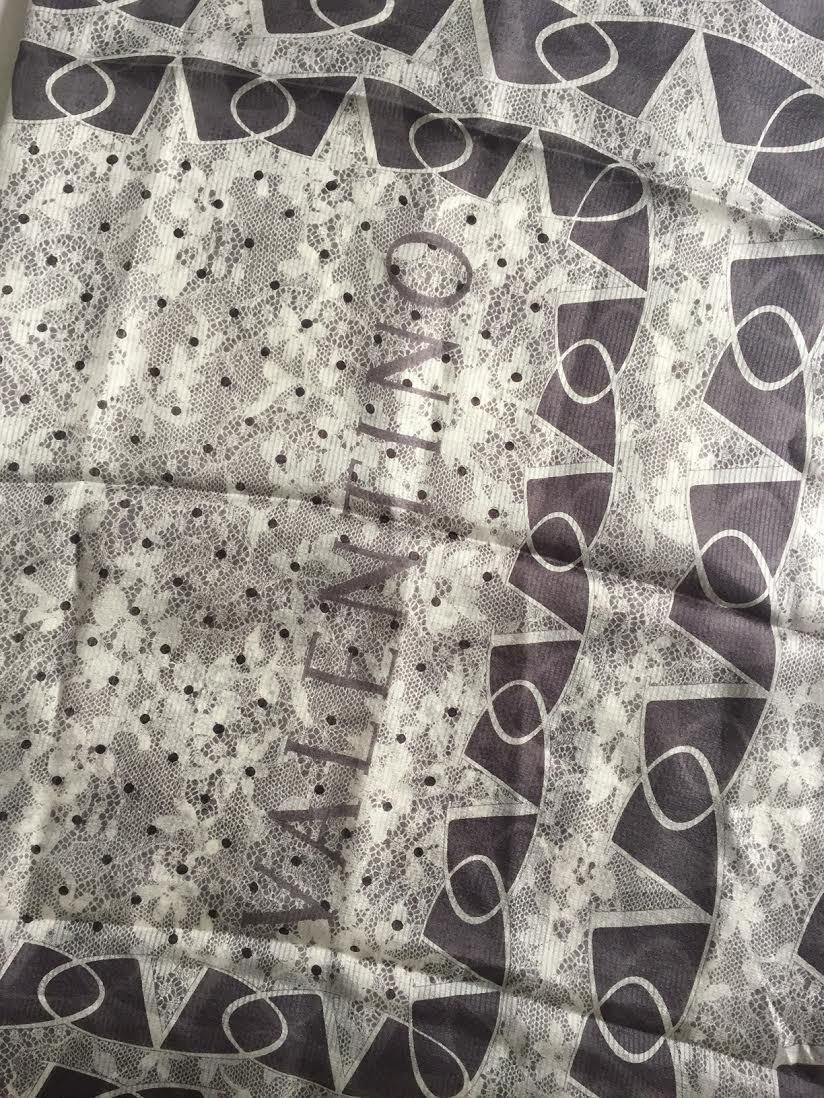 "Szal Valentino jedwab kolor szary w delikatne wzory wymiary 180 cm/70 cm Nowy"