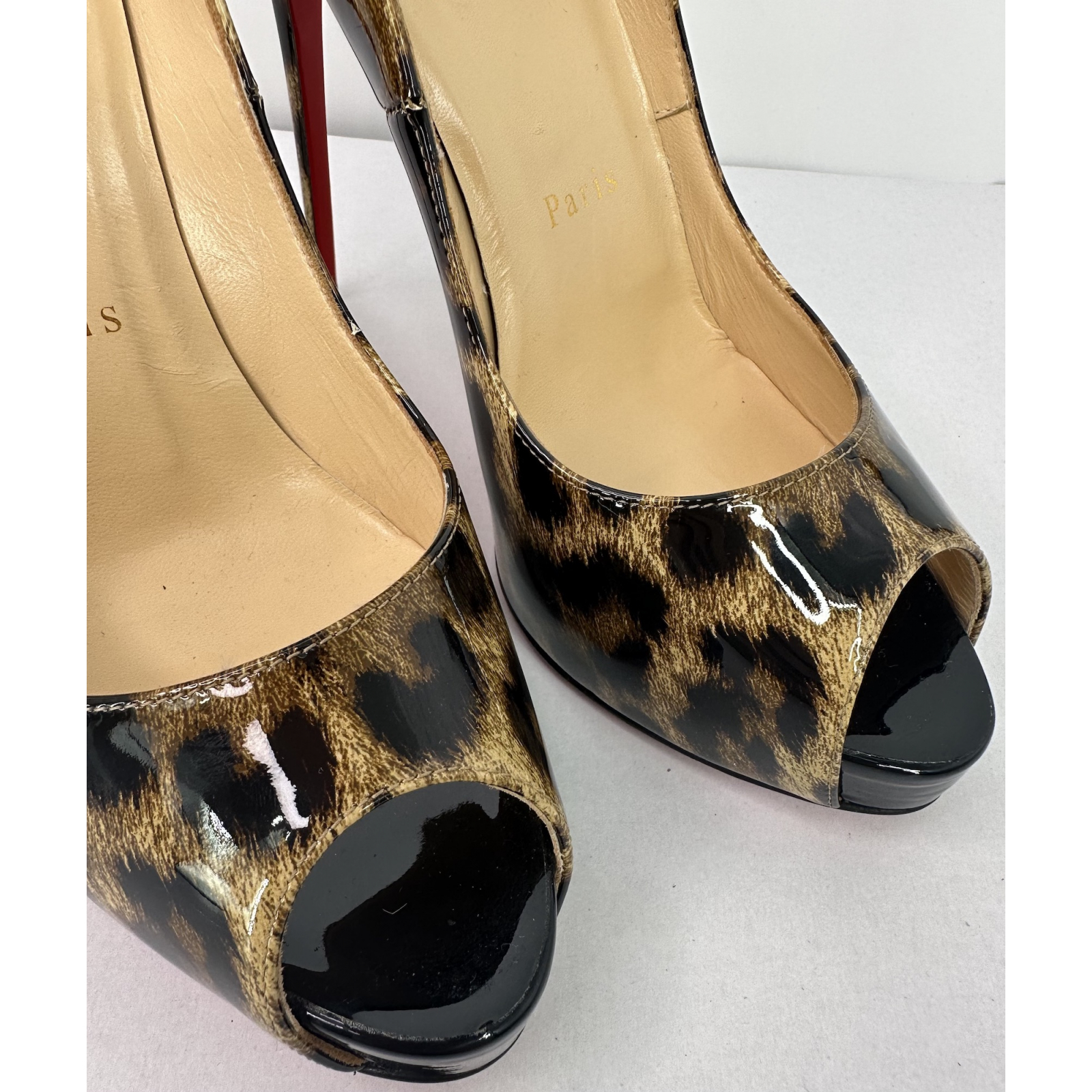 "szpilki we wzór panterki, lakierowane, odkryty palec, raz założone, stan bardzo dobry, pudełko i worki przeciwkurzowe w zestawie. Rozmiar 37, wys. obcasa 12 cm."