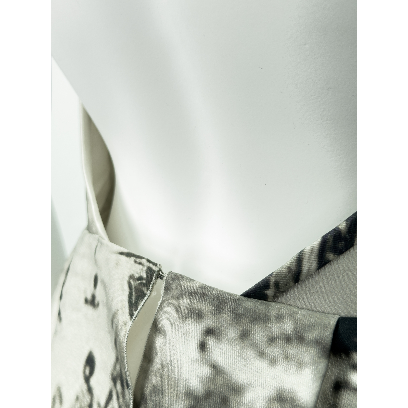 "Jasnozielona bluzka z odkrytymi plecami ozdobiona grafiką palm oraz plaży, bez rękawów, dekolt w szpic, zapinana na trzy kryte haftki w tylnej części przy szyi oraz jedną w okolicy talii, wykończona baskinką. Stan dobry, posiada delikatne zabrudzenia podkładem od wewnętrznej strony. Rozmiar z metki IT 42. Wymiary: szerokość mierzona od pachy do pachy 37cm, długość całkowita 70cm."