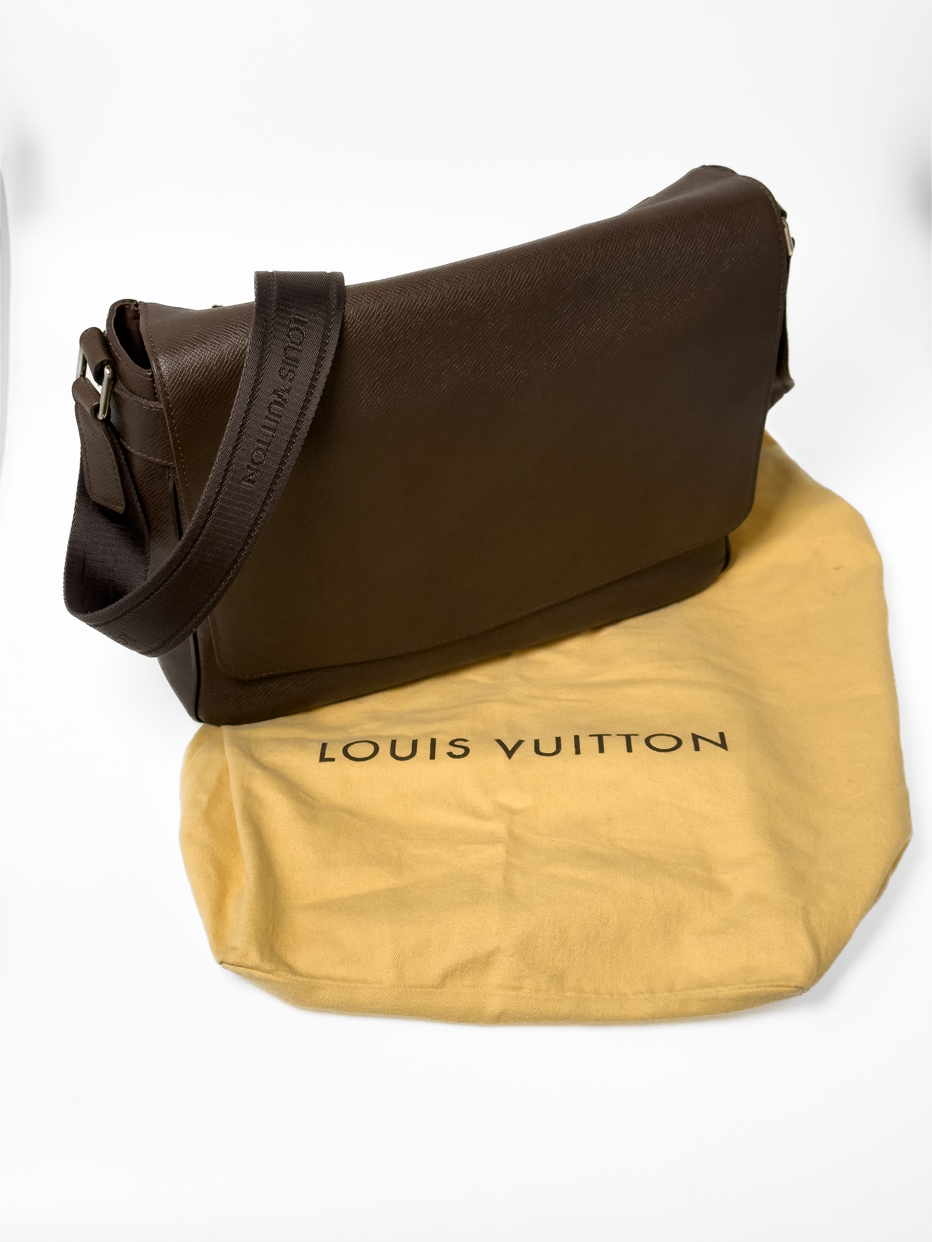 "Brązowa skórzana torebka ozdobiona wytłaczanym logo na klapie, groszkowa skóra, prostokątny kształt, zapięcie magnetyczne pod klapą, srebrne okucia, materiałowy logowany, regulowany pasek na ramię, jedna duża komora, dwie kieszenie, w zestawie z workiem przeciwkurzowym, używana. Stan dobry, przetarcia na rogach. Wymiary: szerokość: 37cm, długośc 25cm, głębokość: 9cm"