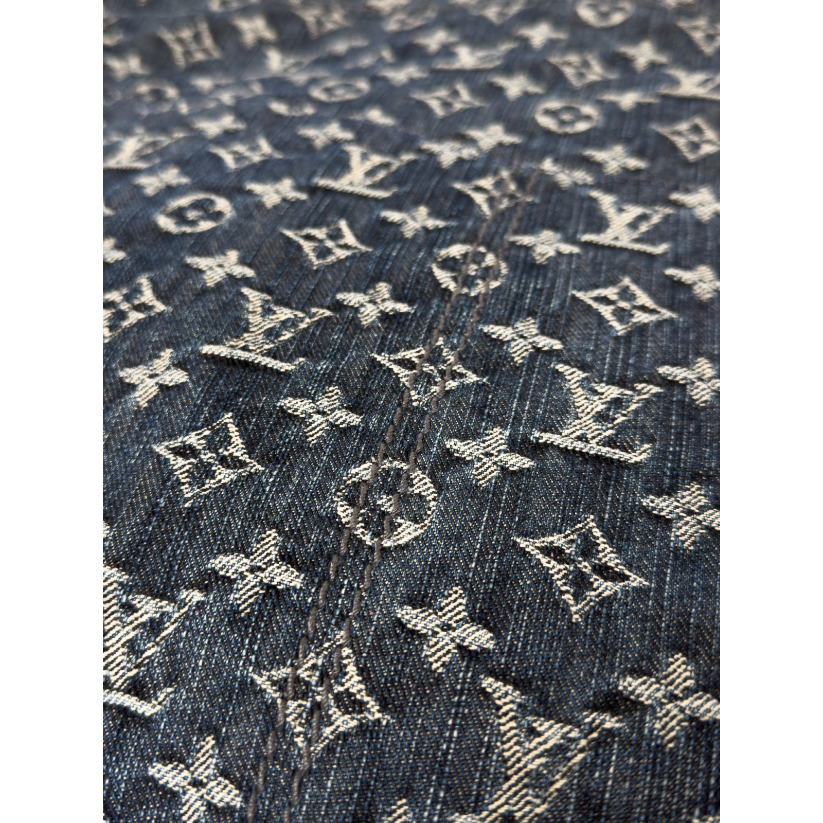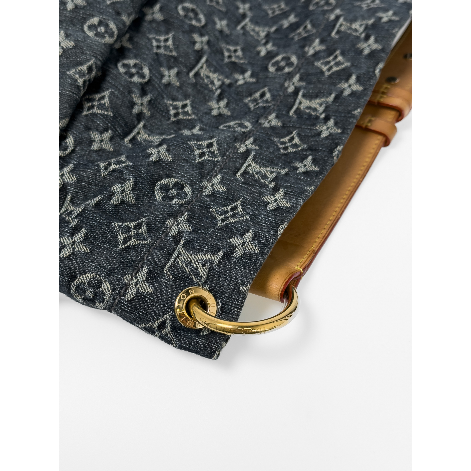 "Model: Daily GM. Denimowa torba w monogram marki z jasnymi skórzanymi elementami. Stan: bardzo dobry, delikatne zacieki na skórze."