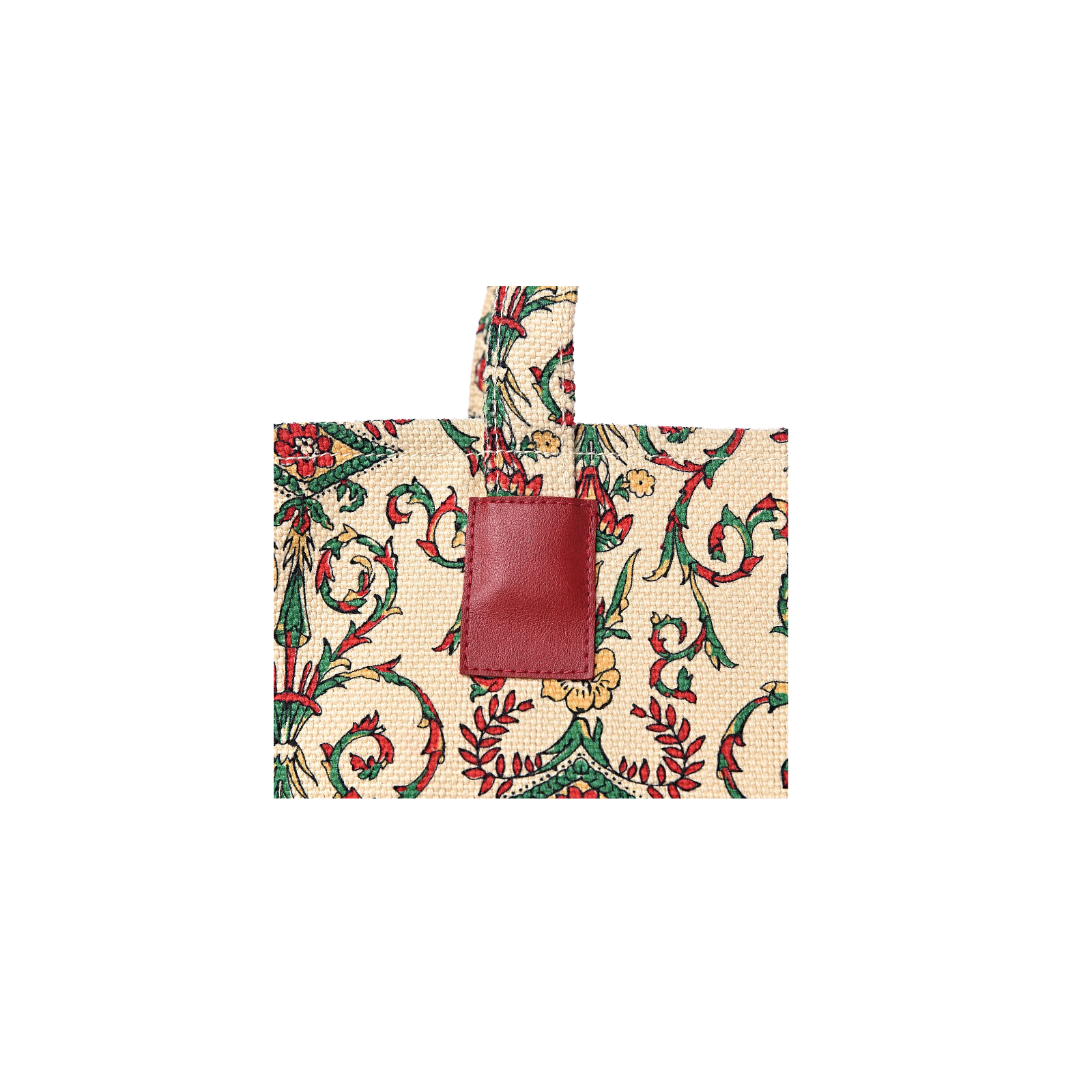 "beżowa materiałowa torba do ręki , wzór zielono czerwone kwiaty/ wzory. Brak zapięcia. Stan bardzo dobry. Kolekcja/Model: Firenze 1921 Tote Bag Floral Vertical Cavas. Wymiary: 40 cm x 35 cm x 13 cm"