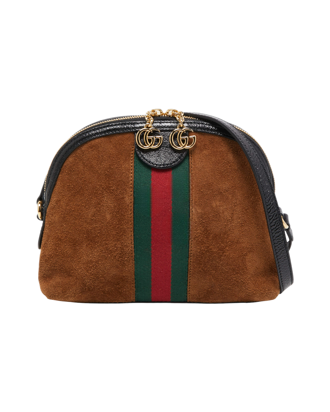 "Ponadczasowa torebka na ramię Gucci Ophidia . Wykonana z zamszu wraz ze skórzanymi detalami. Zapinana na zamek. Wewnątrz atłasowa podszewka z kieszonkami. Numer seryjny wewnątrz torebki. Piękne jesienne kolory . Dosyć pojemna. W komplecie z woreczkiem przeciwkurzowym."
