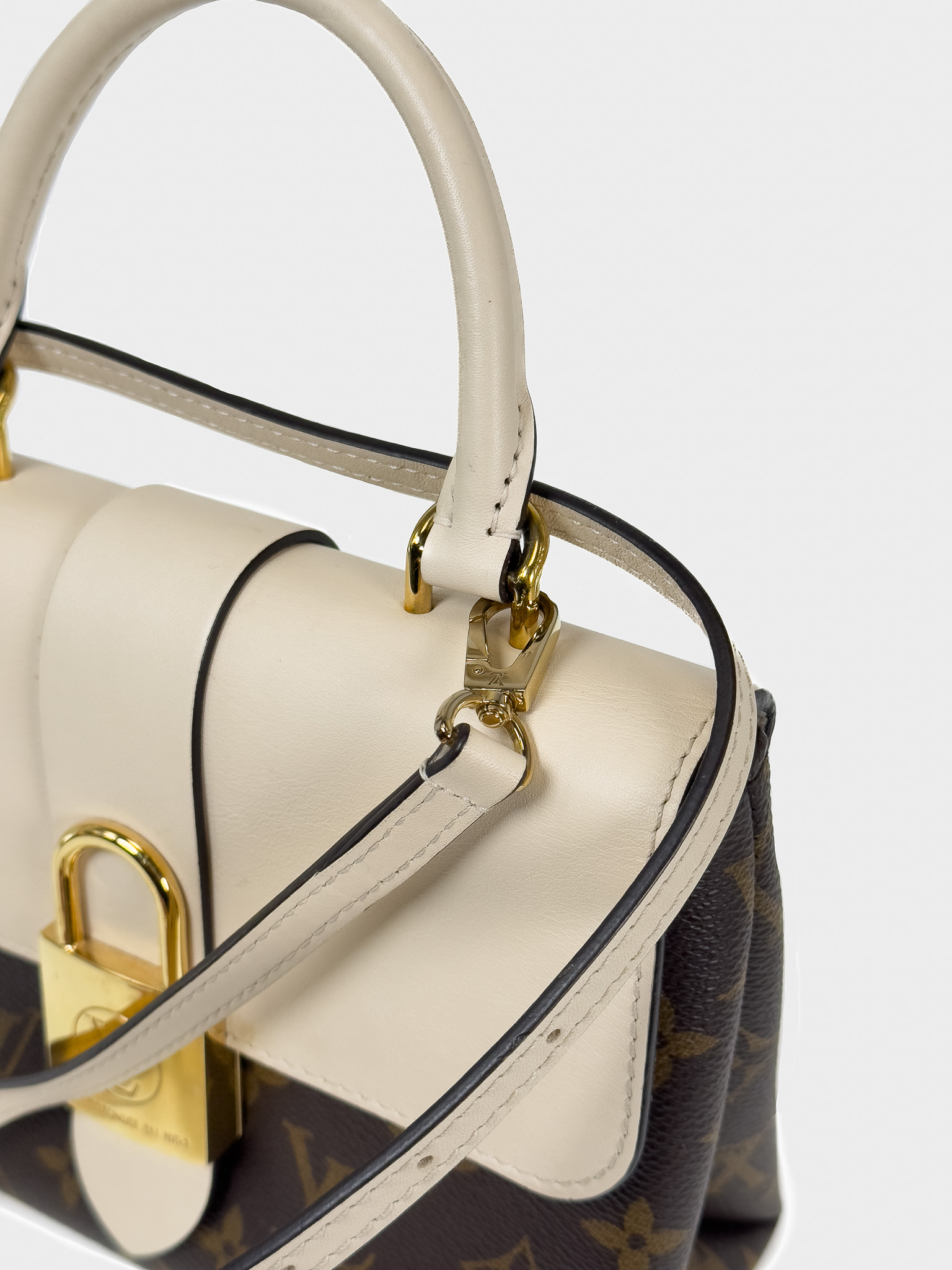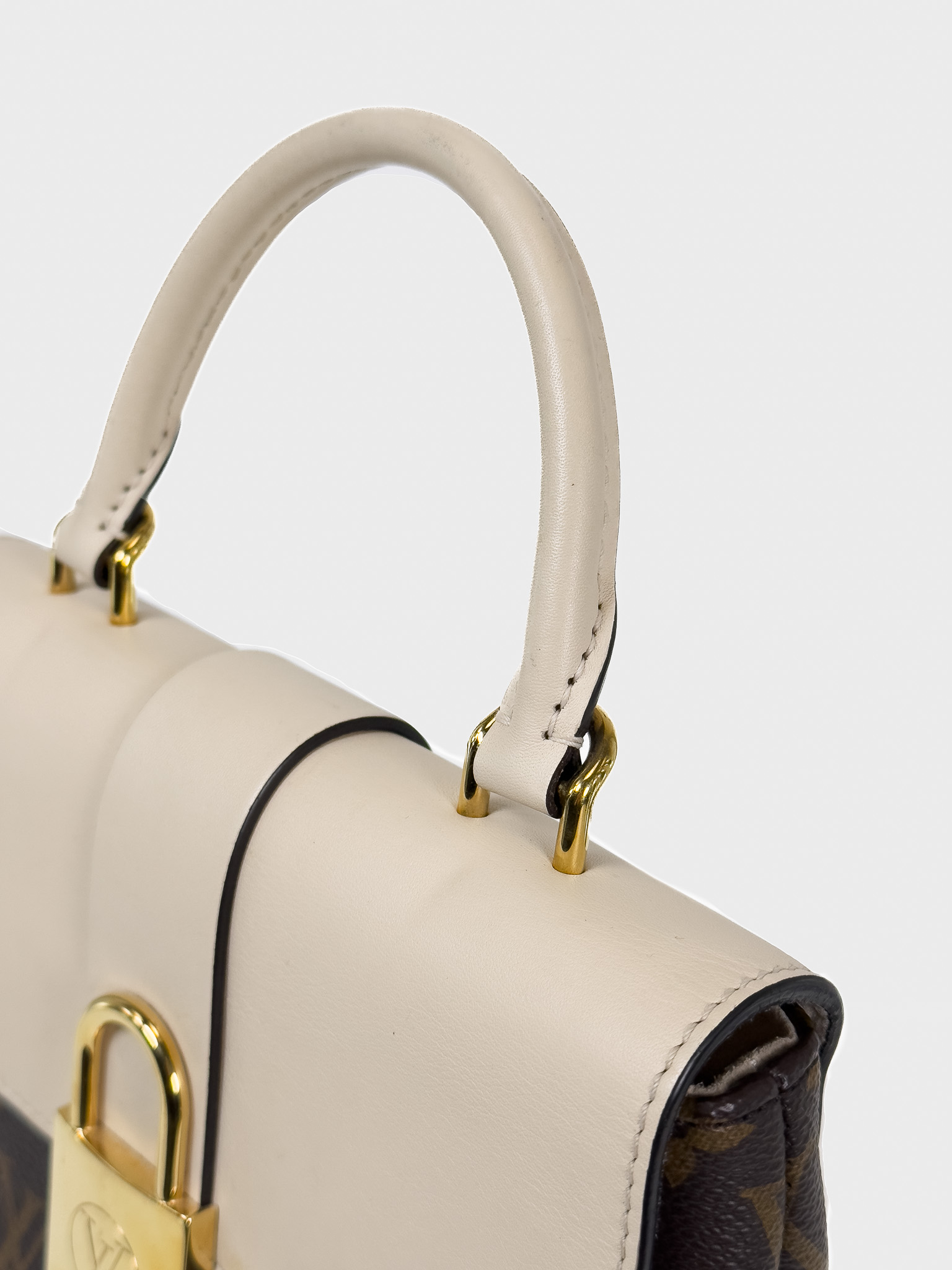 "Model: Locky BB monogram. Brązowa torebka na ramię w monogram marki, beżowe skórzane detale, uchwyt do ręki, długi regulowany pasek na ramię, logowana złota kłódka w centralnej części na klapie, zapięcie magnetyczne, jedna komora z kieszenią wewnątrz. W zestawie: pudełko oraz worek przeciwkurzowy. Stan bardzo dobry, zabrudzenia na beżowej skórze i wewnątrz, delikatne przetarcia na rogach, rysy na metalowych elementach. Wymiary: szerokość 20cm, wysokość 15cm, głębokość 7,5cm."