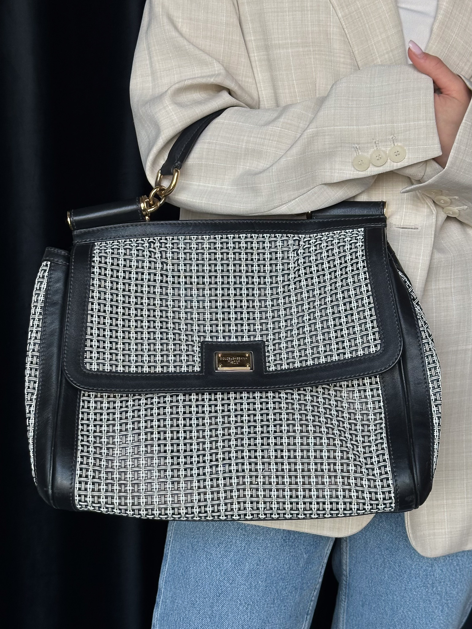 "czarno-beżowa, ażurowa torebka, czarny skórzany długi pasek. W środku czarna kosmetyczka na złotym łańcuszku z podszewka w panterkę. Wymiary: 32 cm x 29 cm"