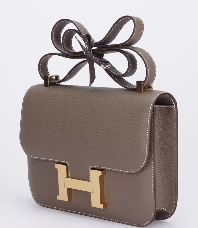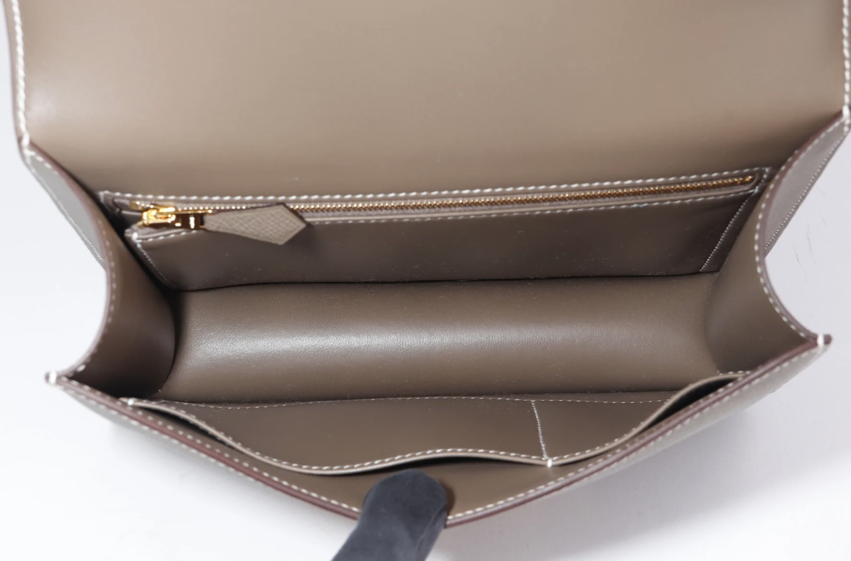 "Torebka model Constance 24, kolor etoupe. Skóra Epsom. Złote okucia. Nowa z pudełkiem, woreczkami, dokumentami. Wymiary: 5.3 cm x 17 cm x w 23 cm"