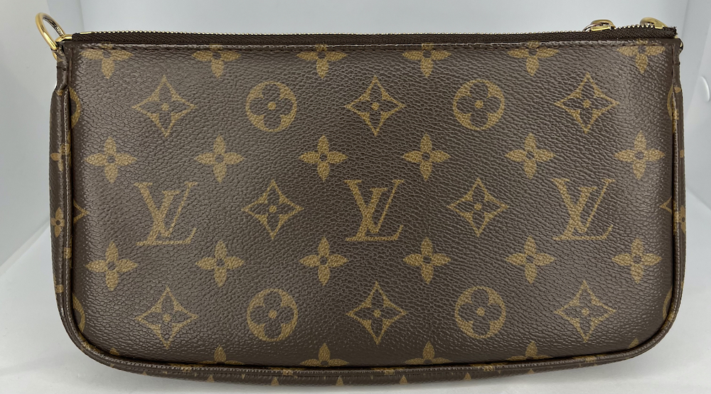 "torba, model Multi Pochette, logowana, ze złotymi elementami oraz paskiem w kolorze khaki, używana stan bardzo dobry. Wymiary 24 cm x 14 cm , 19 cm x 12 cm."