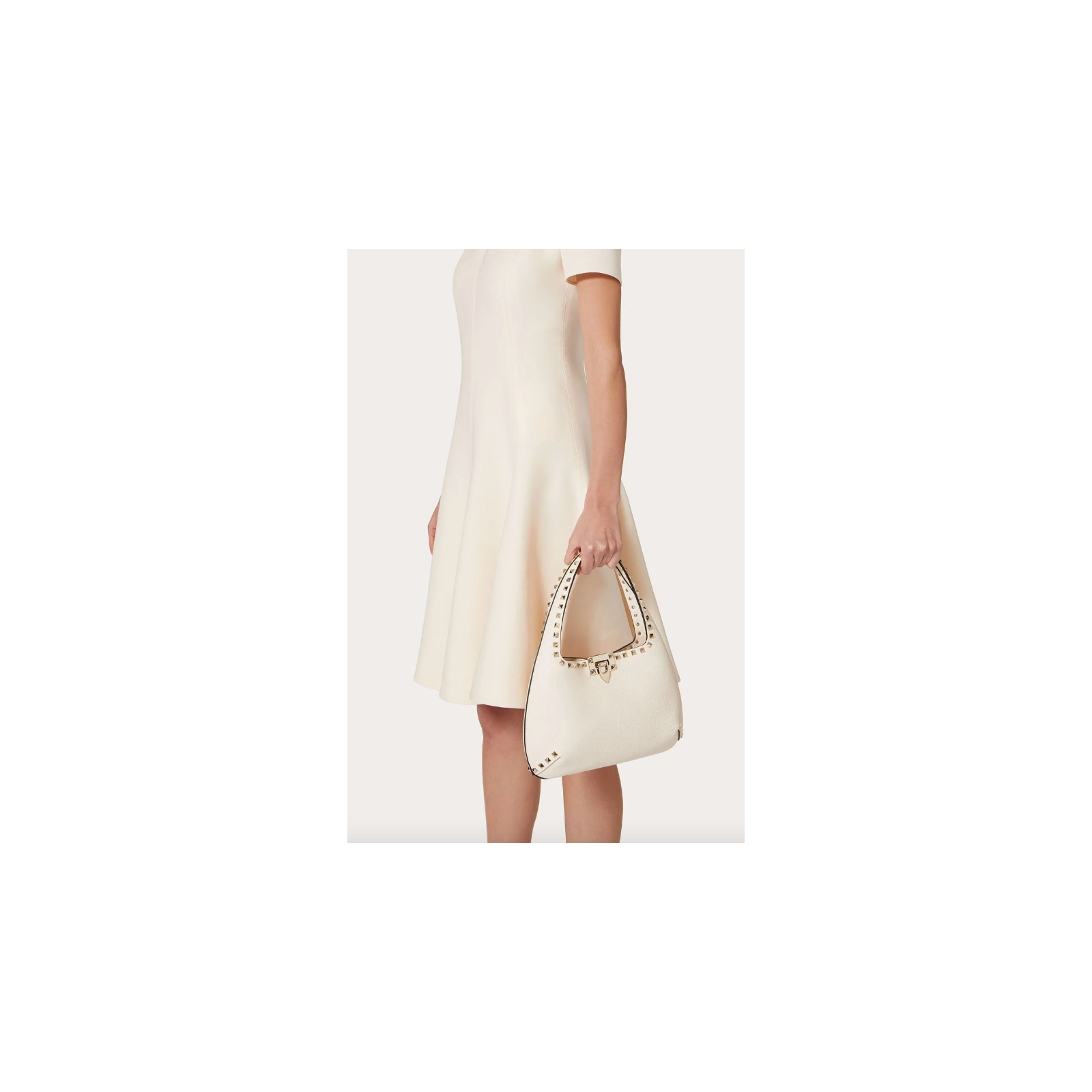 "model ROCKSTUD HOBO , w kolorze beżowym, wysadzana ćwiekami, zapięcie z przodu na klamrę, stan bardzo dobry.Worek przeciwkurzowy w zestawie. Wymiary: szer 30 cm, wys. 19 cm, dł. rączki 40 cm."