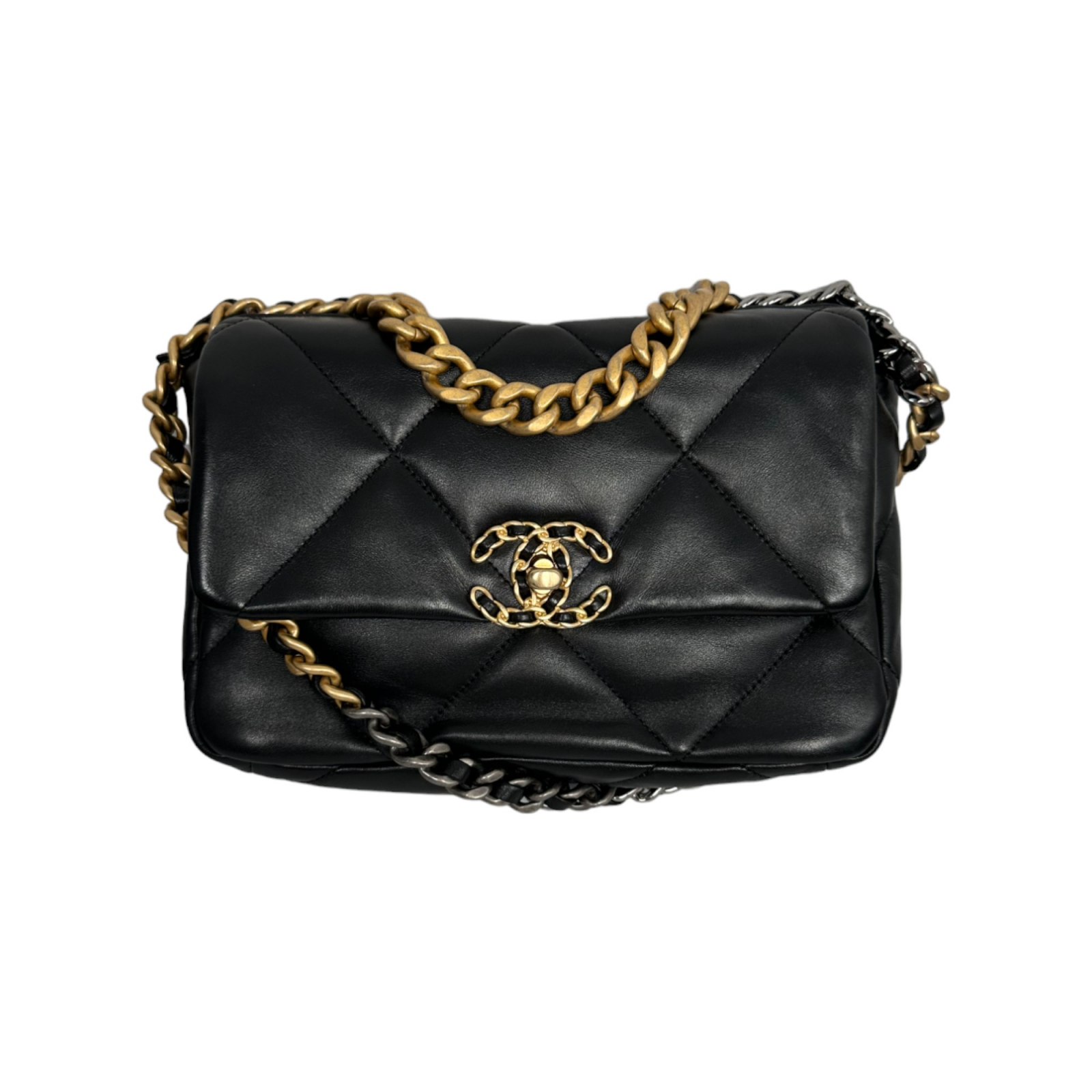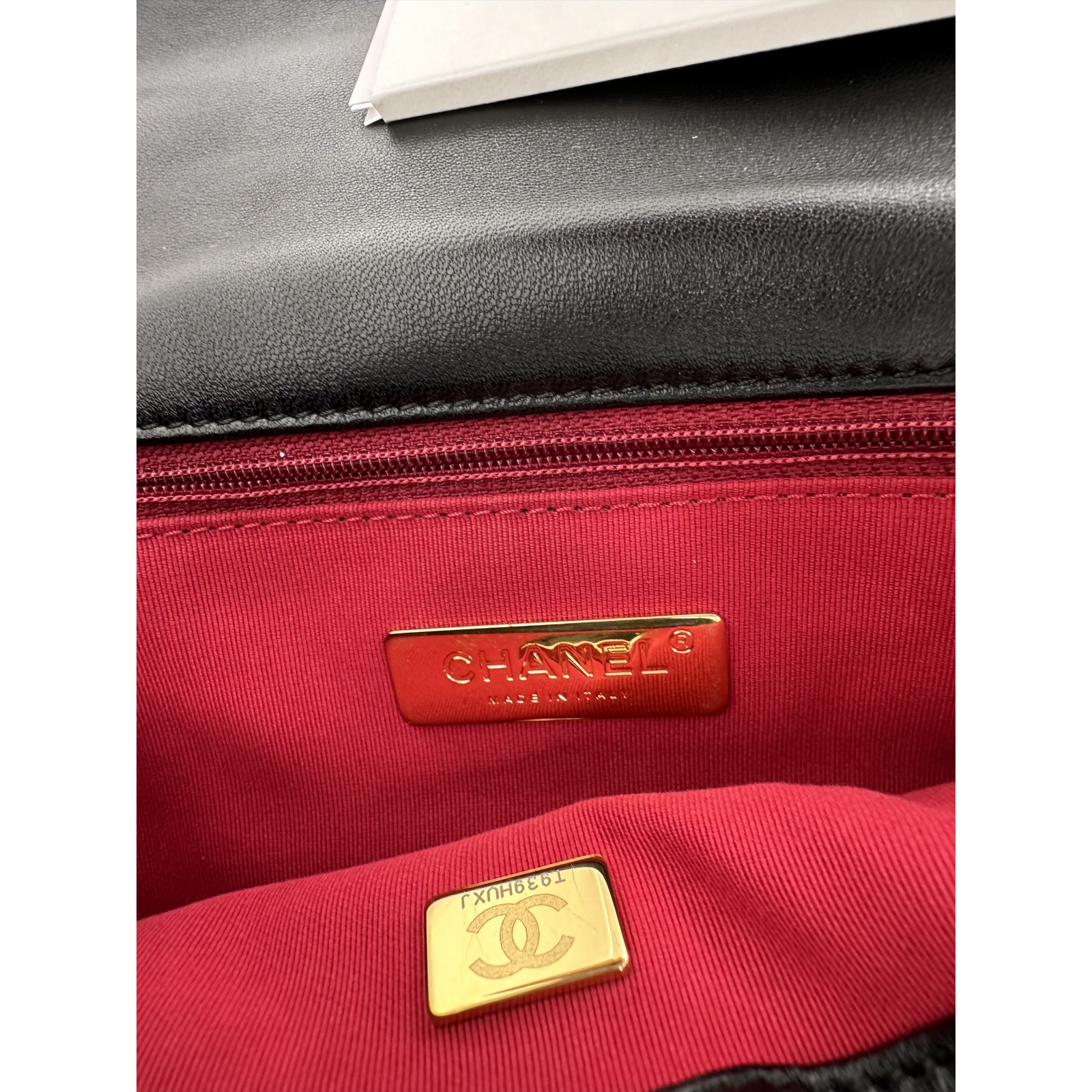 "czarna skórzana pikowana torebka, miękka skóra, ozdobiona dużym złotym łańcuchowym logo marki na przodzie przy przekręcanym zapięciu, skórzano-łańcuchowy matowy pasek na ramię oraz do ręki w odcieniach złota i srebra, kieszeń w tylnej części zapinana na zapięcie magnetyczne,bordowe materiałowe wnętrze, jedna komora z zasuwaną kieszenią wewnątrz. Wymiary: szerokość 26cm, wysokość 17cm, głębokość 8cm. Pudełko, worek przeciwkurzowy, papierowa torba oraz rachunek zakupu w zestawie."