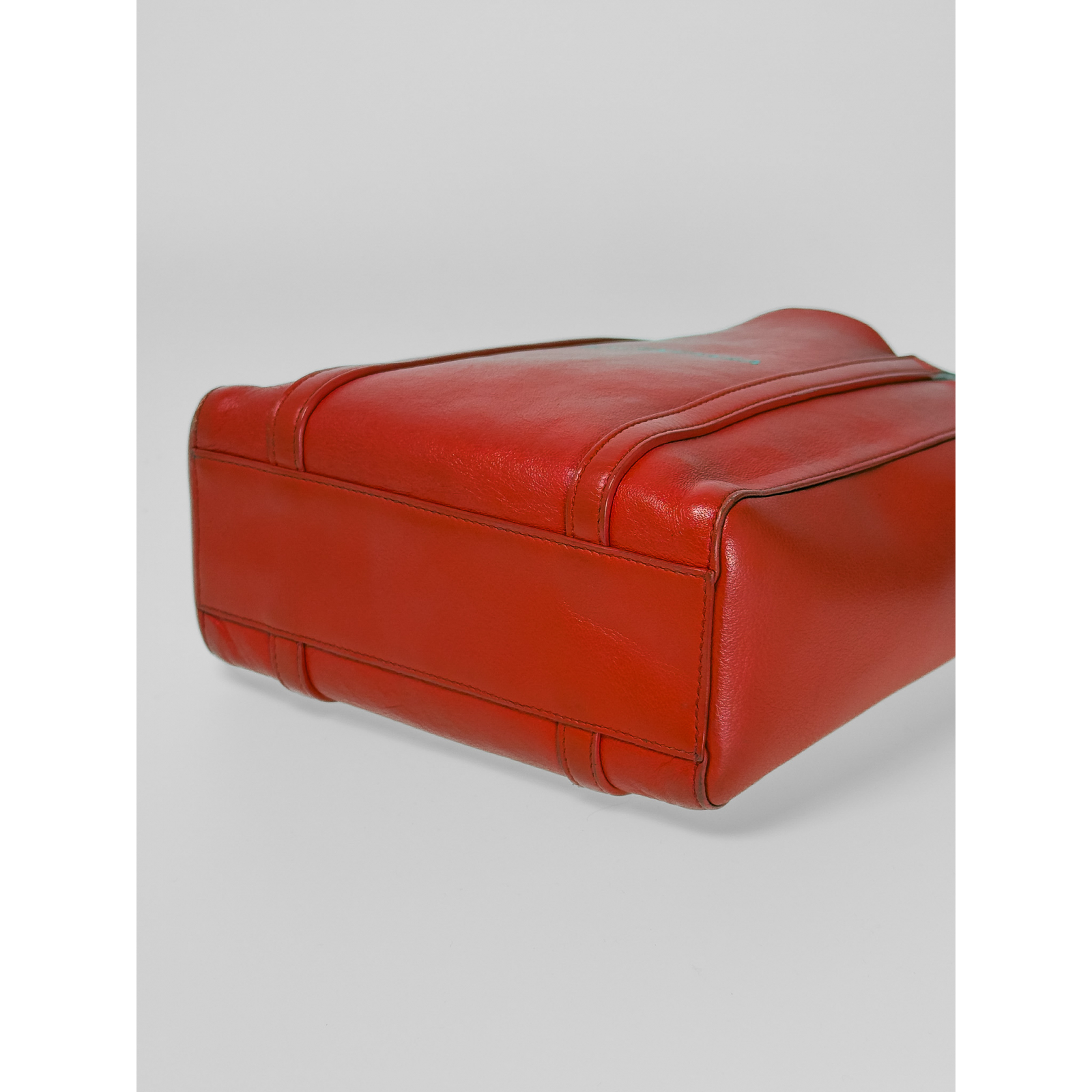 "Czerwona, mała torebka z logo marki, posiada rączki oraz pasek z regulacją. Stan dobry, posiada przetarte rogi oraz delikatne pęknięcia."