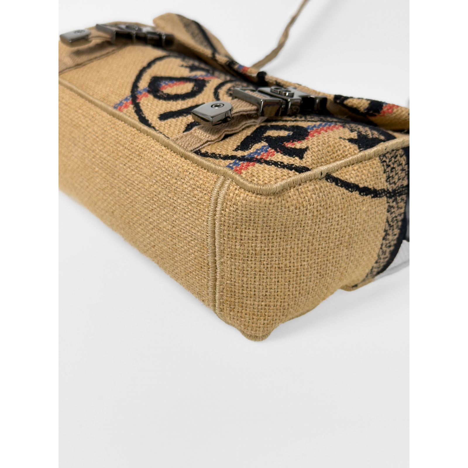 "Model: diorcamp. Beżowa pleciona torebka ozdobiona czarnym logo marki w centralnej części z niebiesko-różowymi przeszyciami, zapinana na logowane metalowe klamry, odpinany, regulowany pasek na ramię, jedna komora wewnątrz. Stan nowa z metkami. W komplecie z : pudełkiem, kartą autentyczności i workiem przeciwkurzowym. Kupiona w 2022 roku w Warszawie. Wymiary: szerokość 24cm, wysokość 17cm, głębokość 7,5cm."