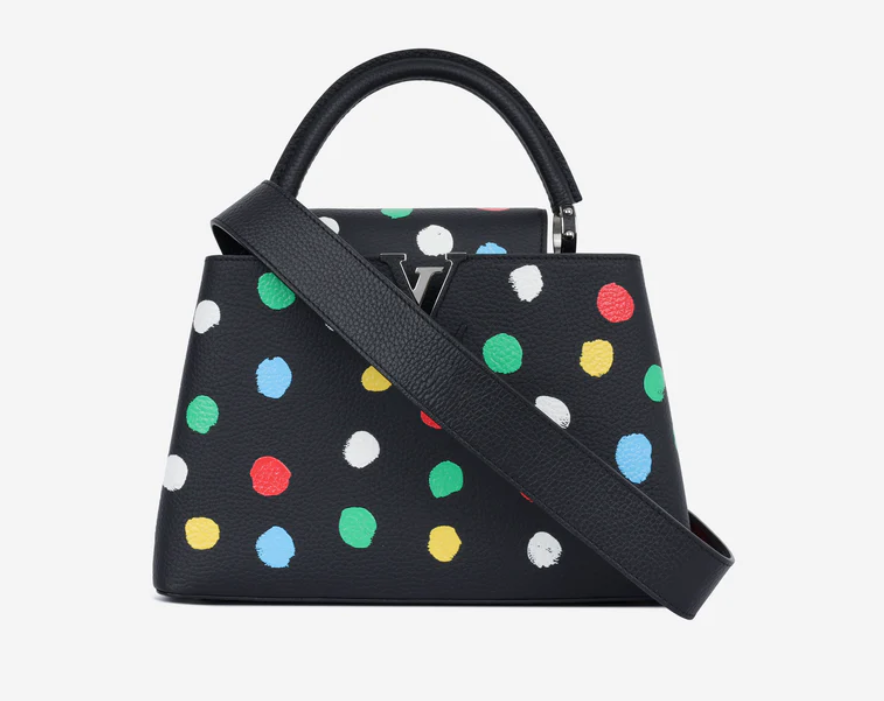 "Czarna torebka Louis Vuitton x Yayoi Kusama z kolorowymi kropkami w odcieniach czerwonym, zielony, niebieskim, białym i żółtym.Wykonana z licowej skóry o ziarnistej faktury. Kompaktowy kształt. Druga edycja współpracy z 2023 roku. W Polsce w sprzedaży była dostępna tylko jedna"