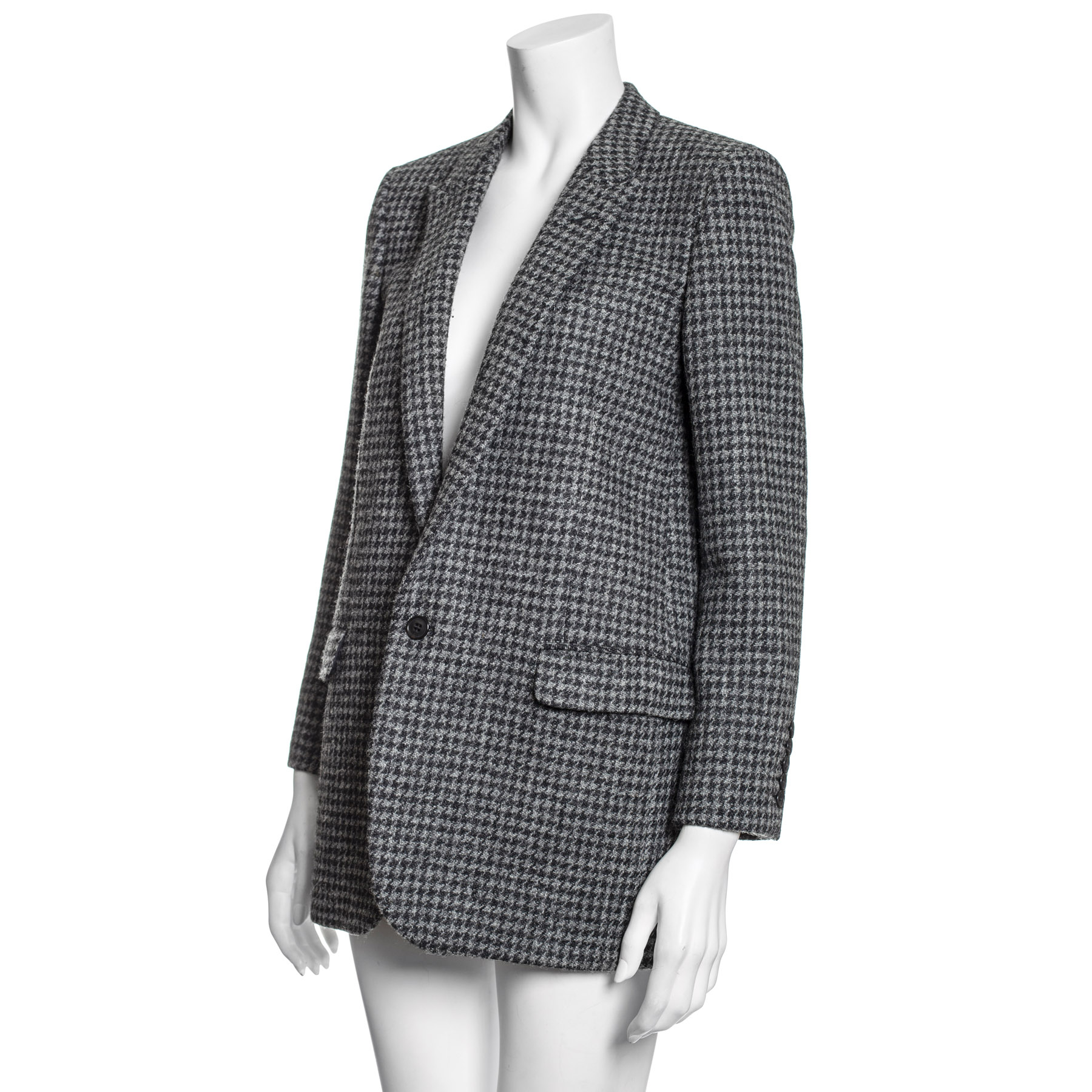 "szara wełniana marynarka w pepitkę, jedwabna podszewka, F40"